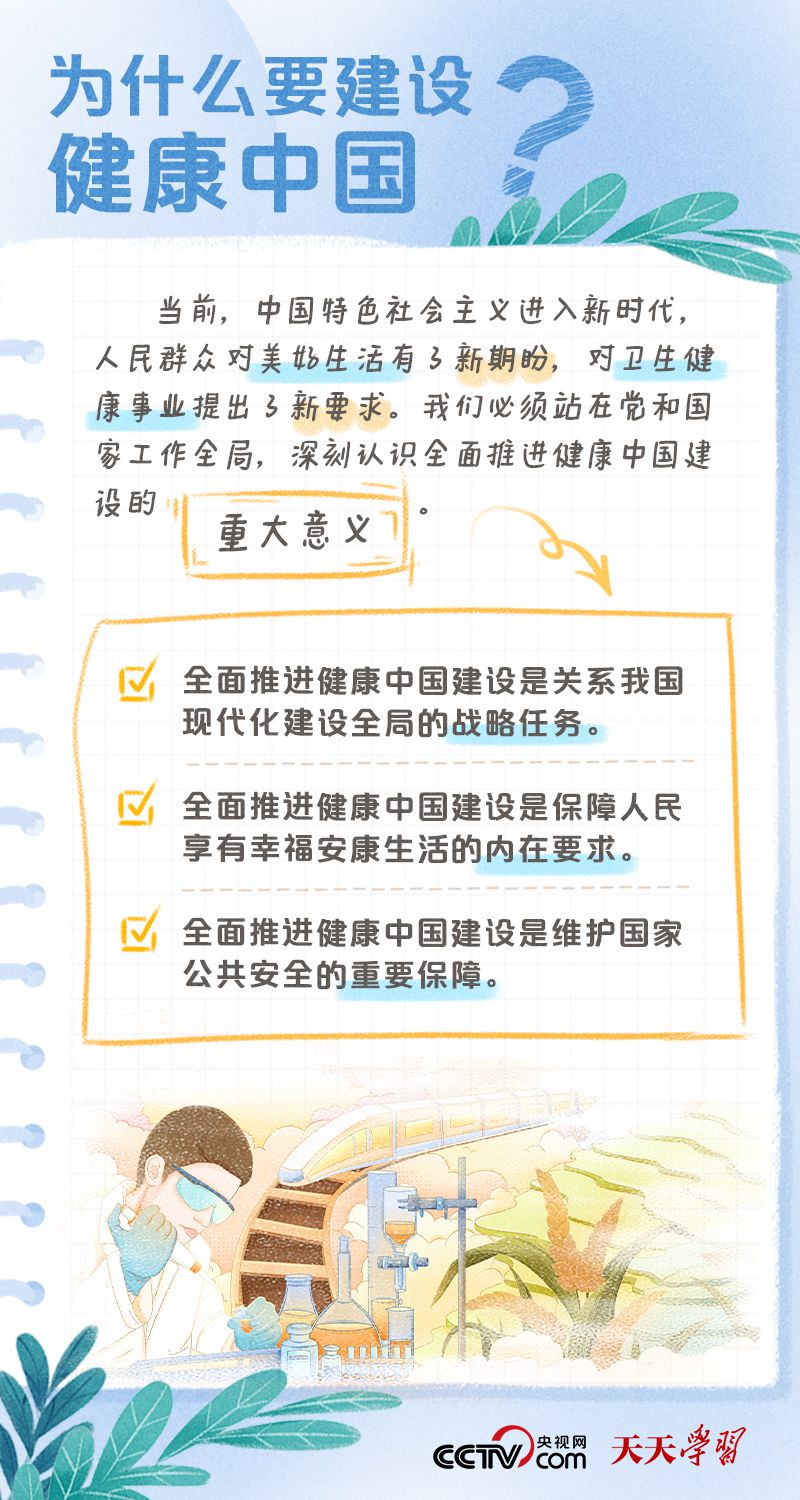 党的二十大报告将“建成健康中国”作为到2035年我国发展的总体目标之一,并指出,人民健康是民族昌盛和国家强盛的重要标志,把保障人民健康放在优先发展的战略位置,完善人民健康促进政策。什么是健康中国?如何全面推进健康中国建设?央视网《天天学习·学习笔记》特梳理相关内容,为您解读总书记治国理政关键词——健康中国。