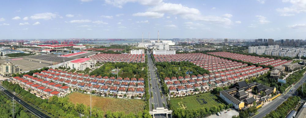 这是2022年10月17日拍摄的江苏江阴长江村村貌(无人机照片)。近年来,长江村坚持生态优先高质量发展理念,不断做大做强村经济,目前该村实体年销售收入突破1000亿元,村民有股份、有分红、有社保,成为远近闻名的富裕村。