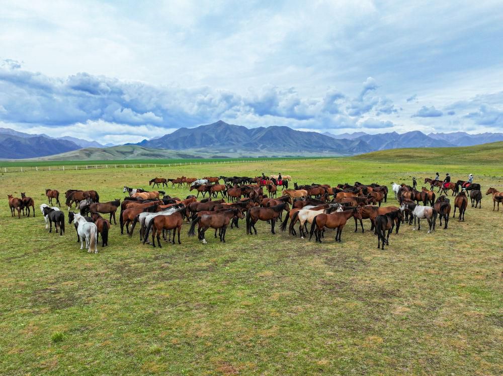 △甘肃山丹马场,成群的骏马在欢腾觅食。