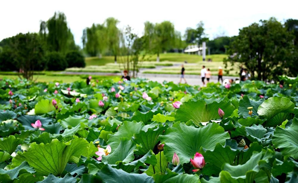 △2022年6月22日,人们在四川眉山市东坡区太和镇永丰村欣赏荷塘美景。