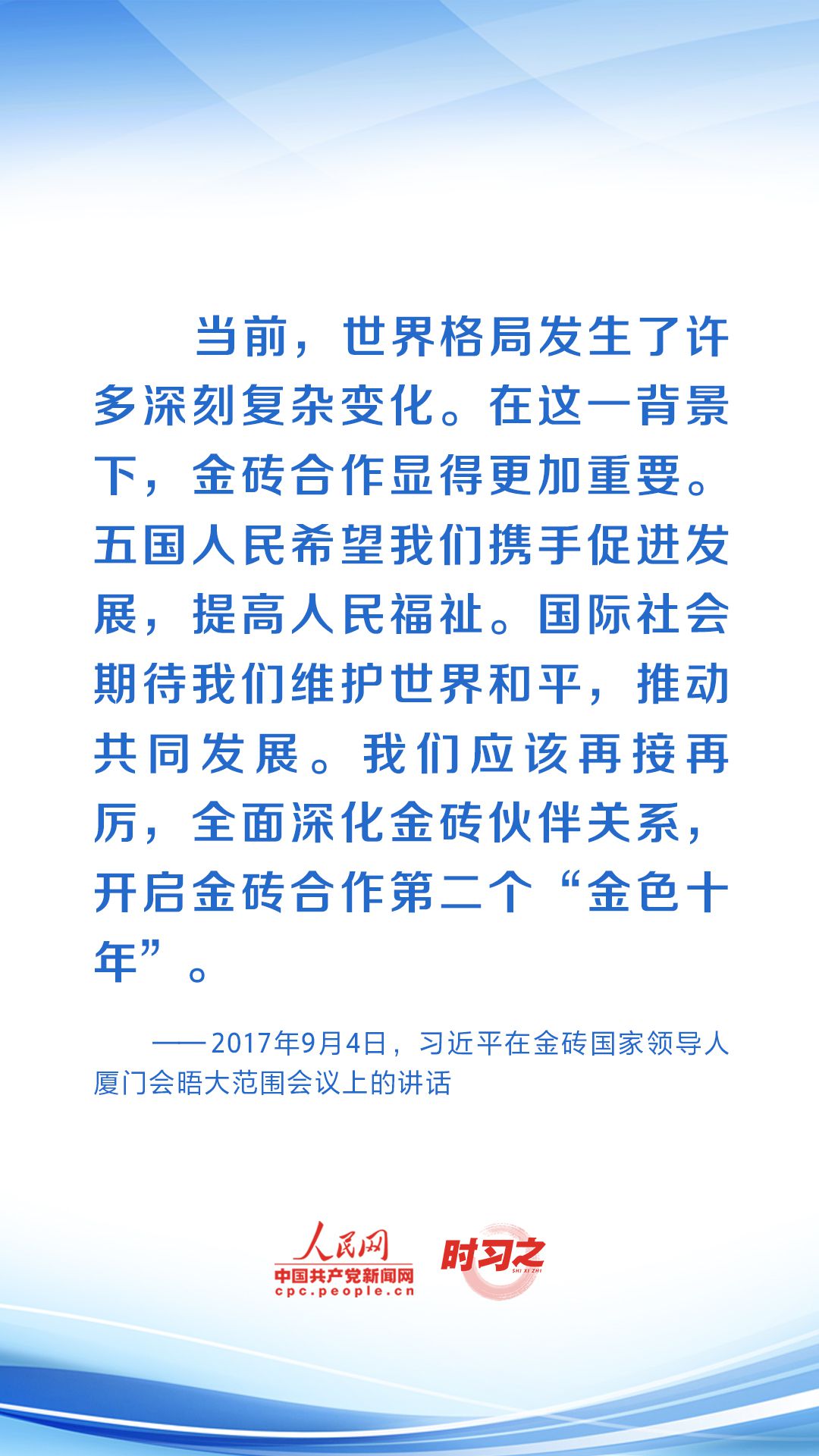 志合者,不以山海为远。2013年以来,习近平主席主持或出席金砖国家领导人历次会晤,共绘金砖合作发展的同心圆,为共创全球发展新时代、推动构建人类命运共同体注入了中国力量。