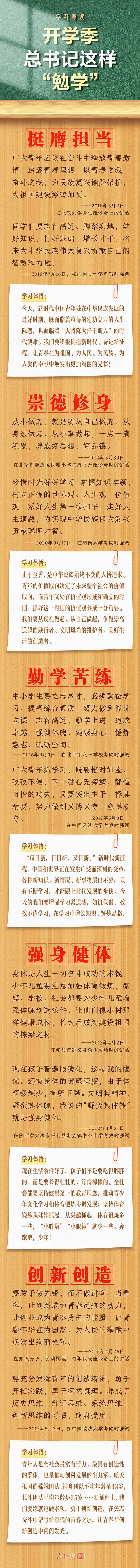“学习是成长进步的阶梯”“青春是用来奋斗的”“野蛮其体魄”……又到一年开学季,南方+为您梳理习近平总书记“勉学”的重要论述,与同学们一起学习体悟。