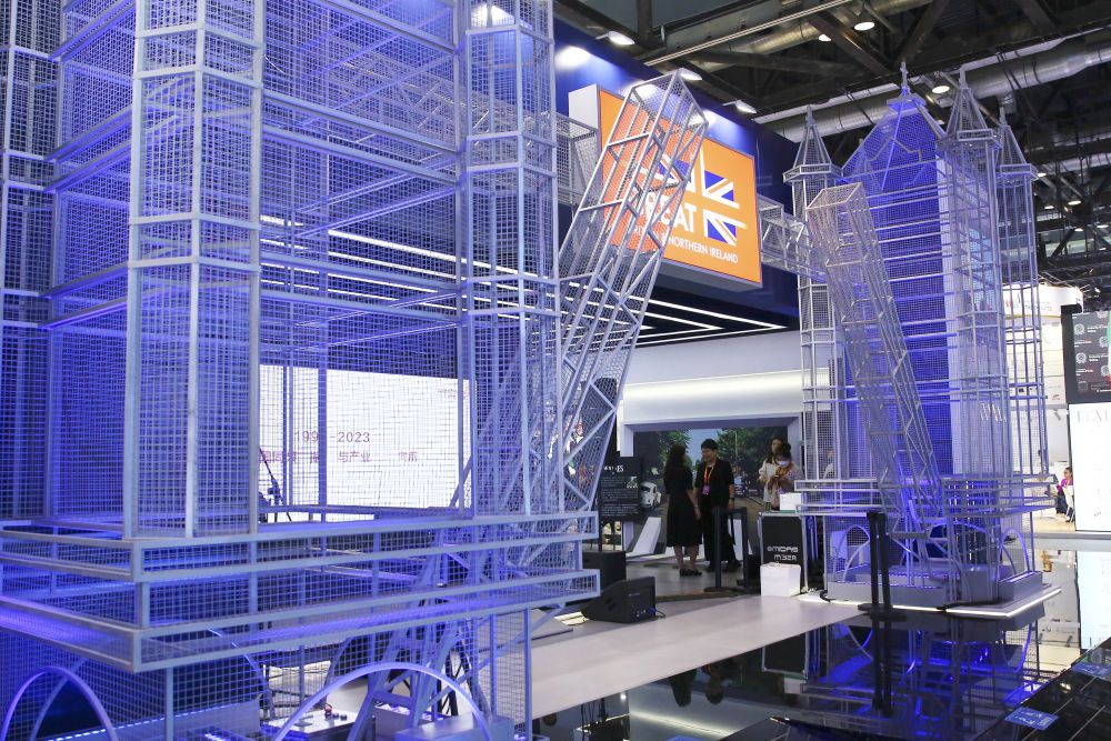 国家会议中心综合展区内,主宾国英国国家馆展台前参观者络绎不绝。英国体育科技企业REZZIL运营部主管克莱福德正忙着为中国参观者展示公司的虚拟现实互动产品。