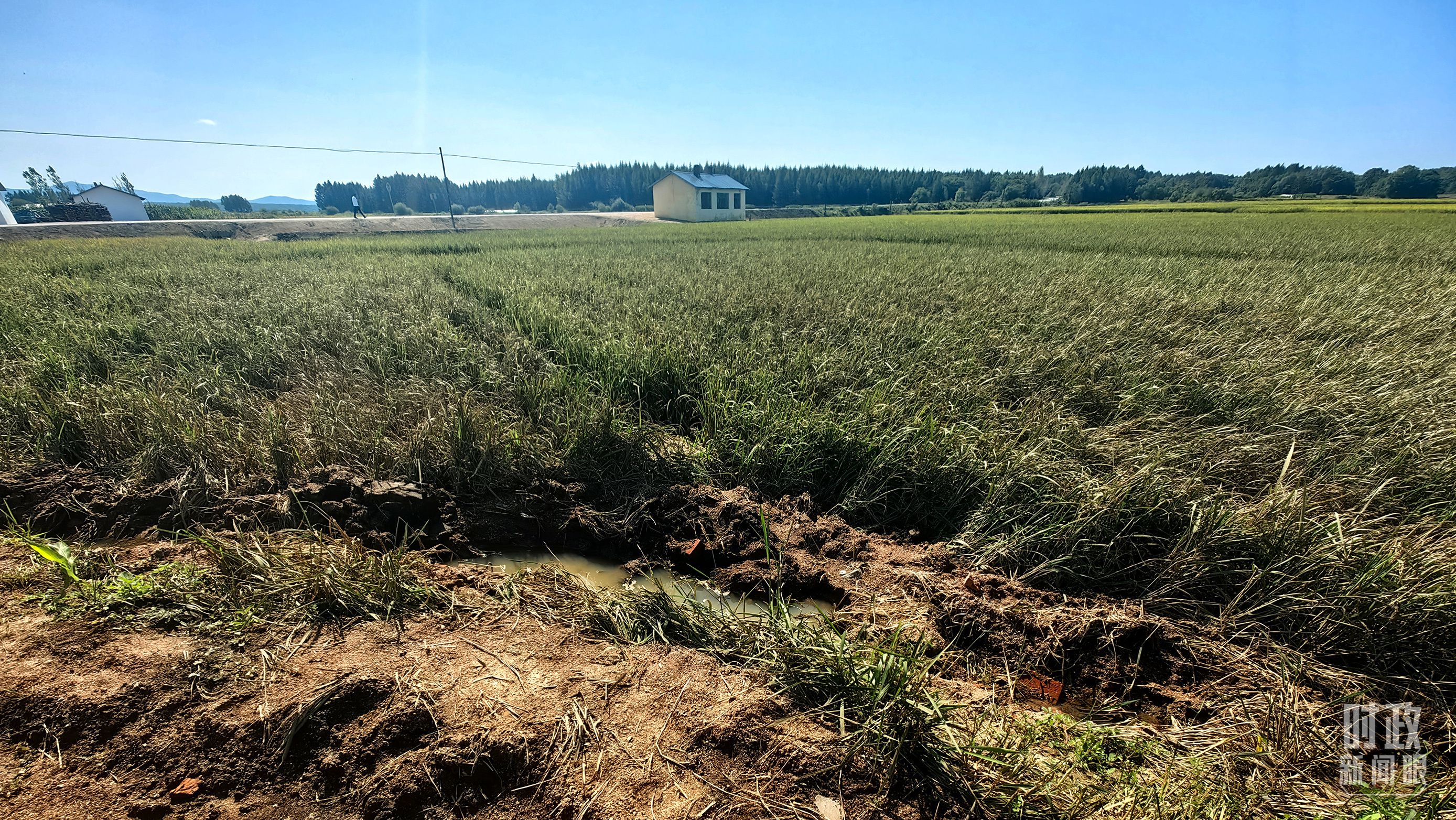 △图为龙王庙村在洪灾中受损的农田。(总台央视记者史伟拍摄)