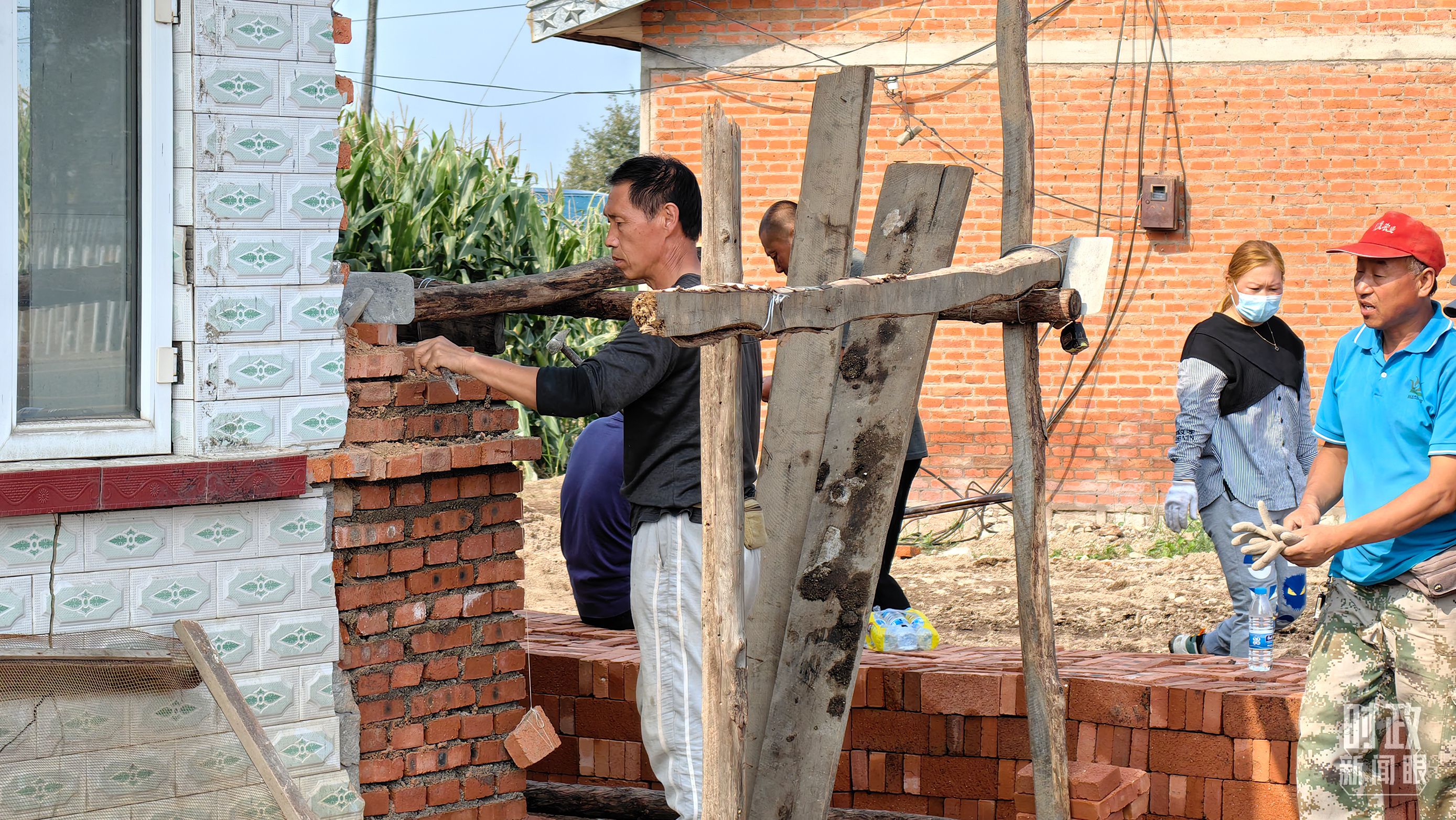 △龙王庙村内,村民正在修缮在洪水中受损的房屋。(总台央广记者潘毅拍摄)