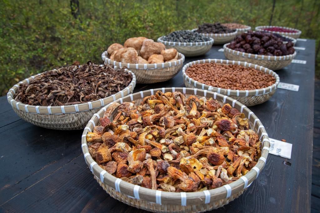 近日,漠河市北极村一景区展示的林下产品。新华社记者 张涛 摄