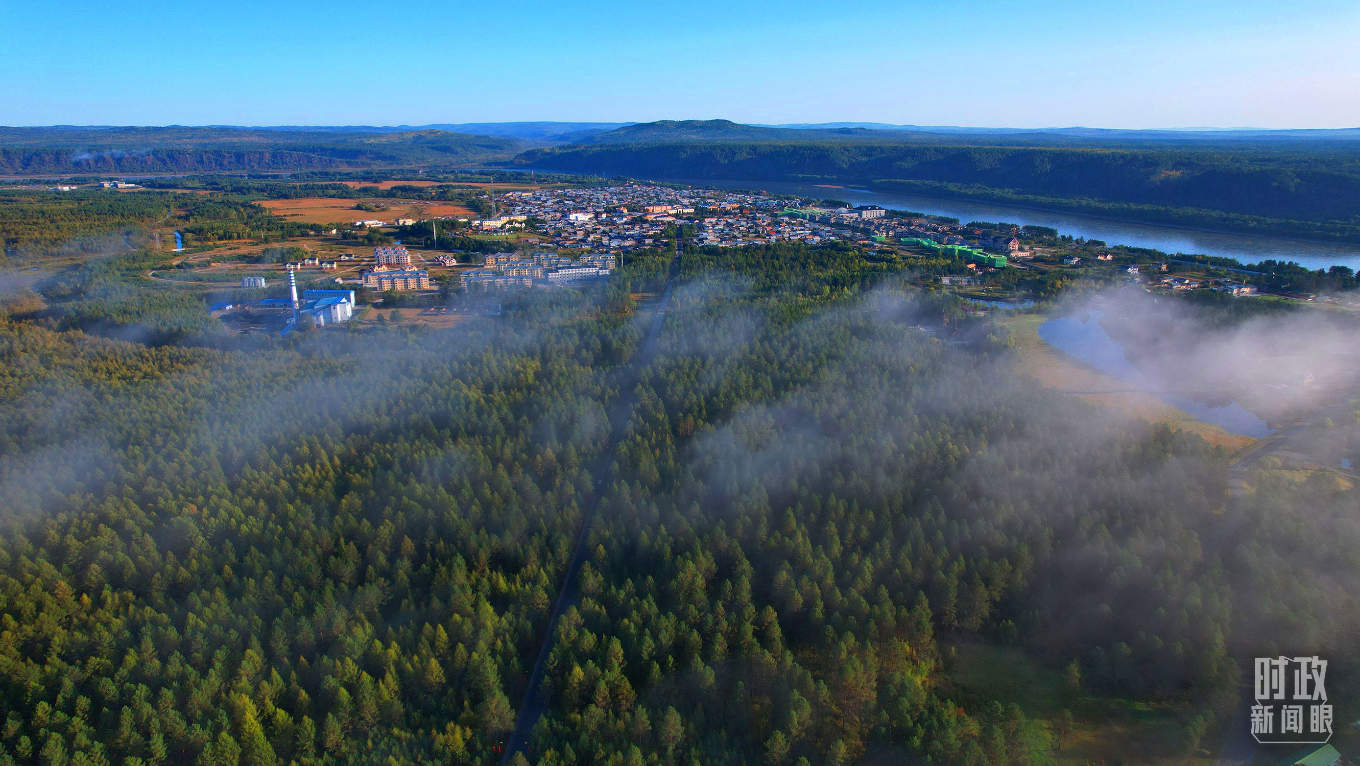 △薄雾笼罩的漠河林场。(总台央视记者范凯拍摄)