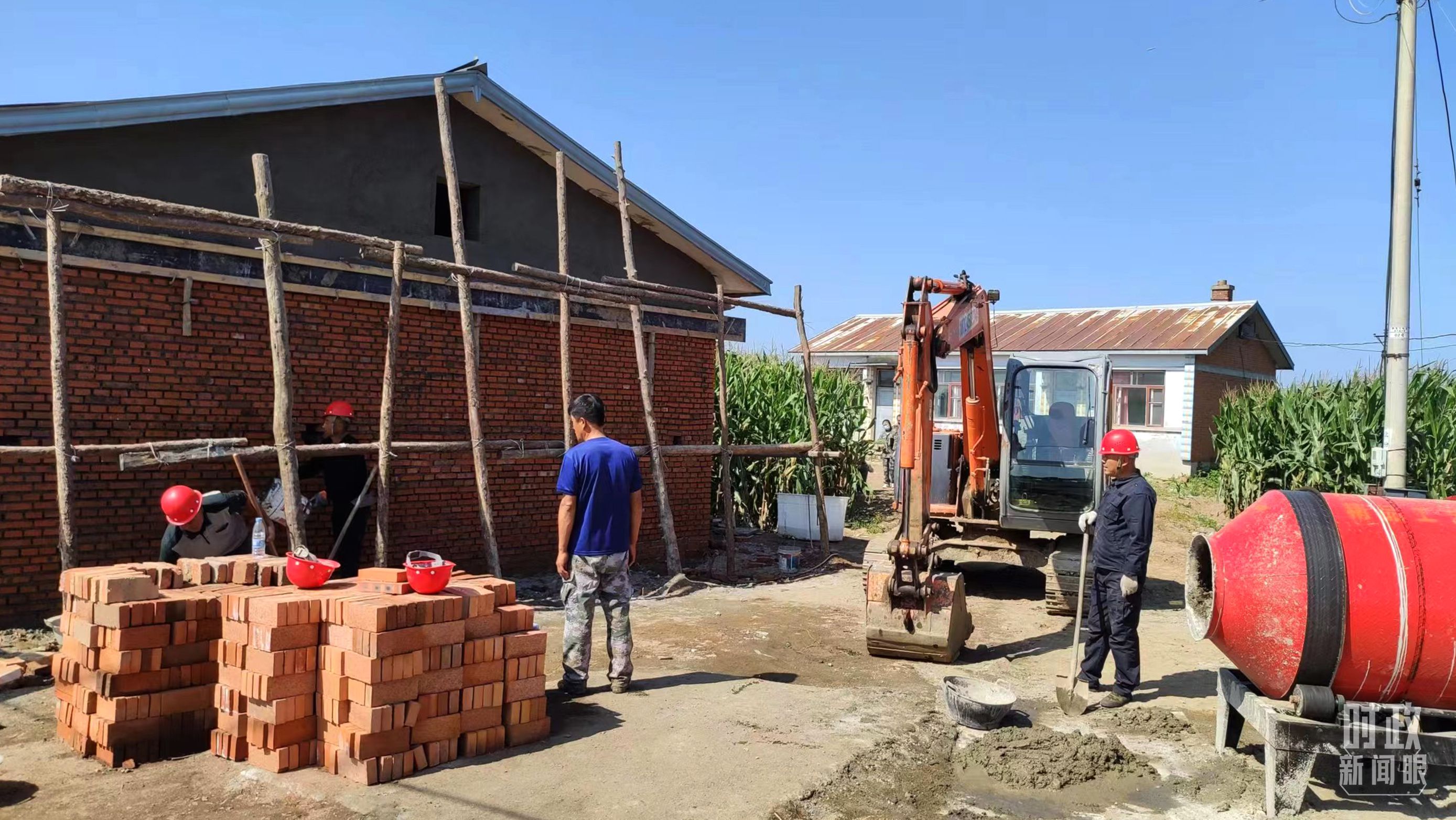 △村民正在修缮被损的房屋。(总台央视记者薛冠南拍摄)