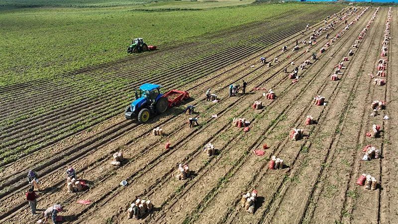 △9月3日,河北省围场满族蒙古族自治县御道口镇御道口村一家马铃薯种植合作社社员在收获马铃薯。