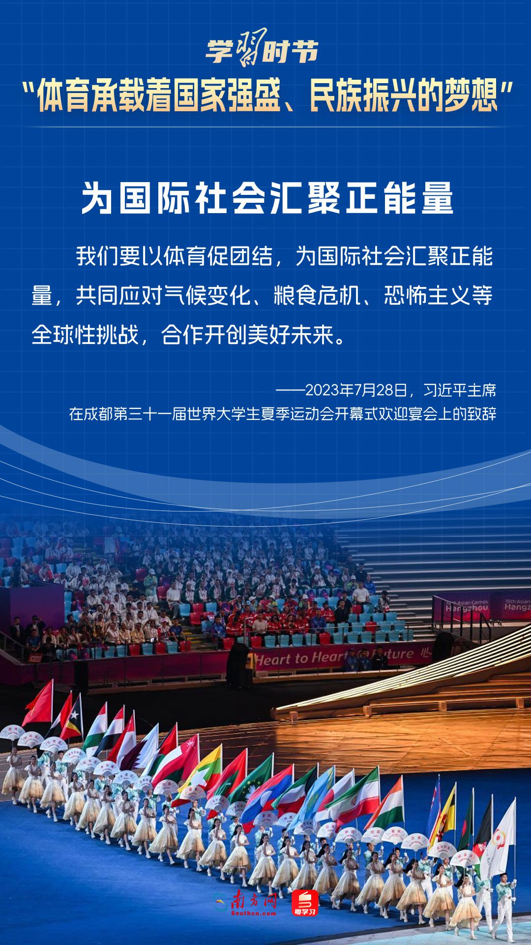 体育是社会发展和人类进步的重要标志,是综合国力和国家软实力的重要体现。“体育强则中国强,国运兴则体育兴。”在习近平总书记心中,“体育强国梦”与“中国梦”紧密相连。学习时节梳理了总书记关于发展体育事业、建设体育强国的重要论述,让我们一同学习。