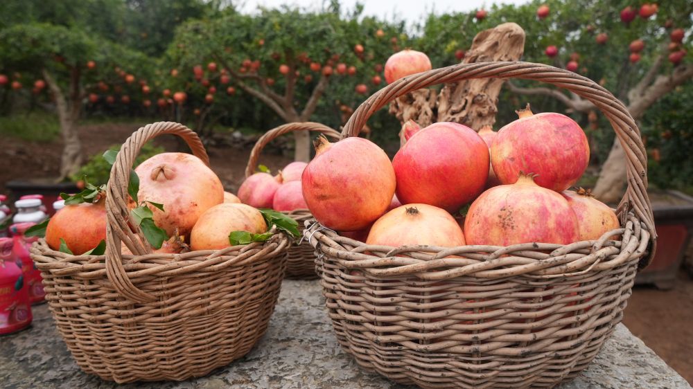 行走在榴园镇,绿山环绕间,一棵棵石榴树连片成荫,一眼望不到头。石榴树苍劲古朴,千姿百态,自然成景。正是金秋丰收时节,硕大的石榴缀满枝头,果农来回穿梭在树木间,手持剪刀忙着采收。