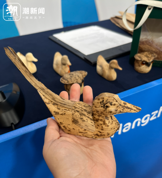 当天,现场“变废为宝”的案例比比皆是。杭州市余杭区传梭博物馆馆长郑芬兰带来了用废弃木料和笋壳做成的亚运“加油鸭”。据了解,2000多只“加油鸭”在亚运村广受欢迎,运动员们纷纷询问制作方法,一度“一鸭难求”。