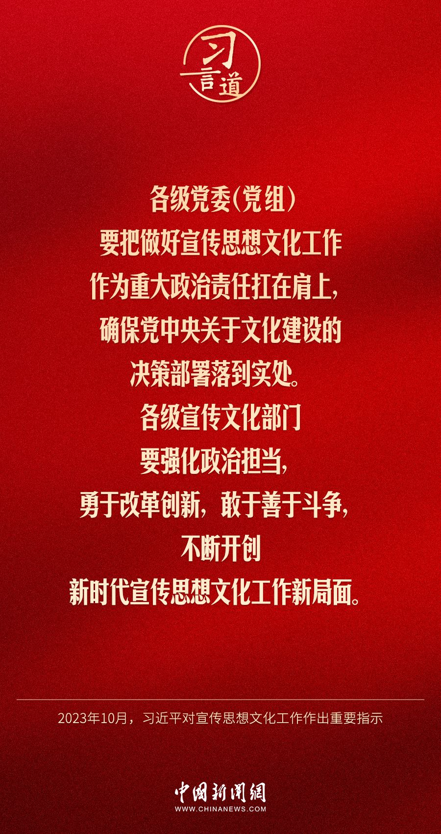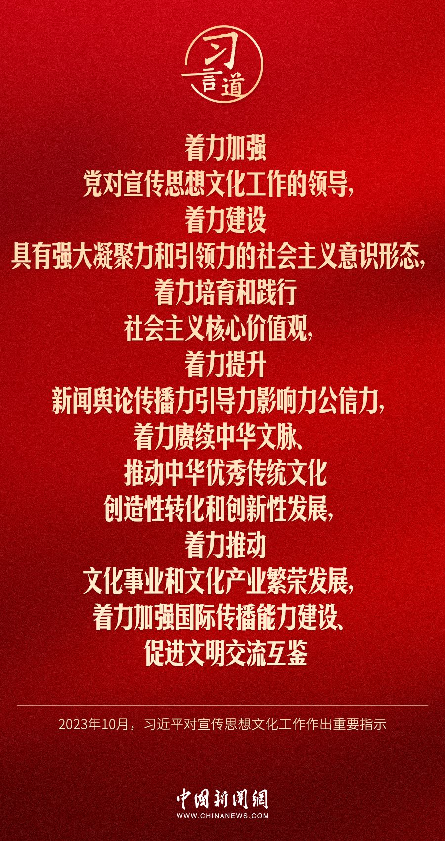 中共中央总书记、国家主席、中央军委主席习近平近日对宣传思想文化工作作出重要指示,他指出——