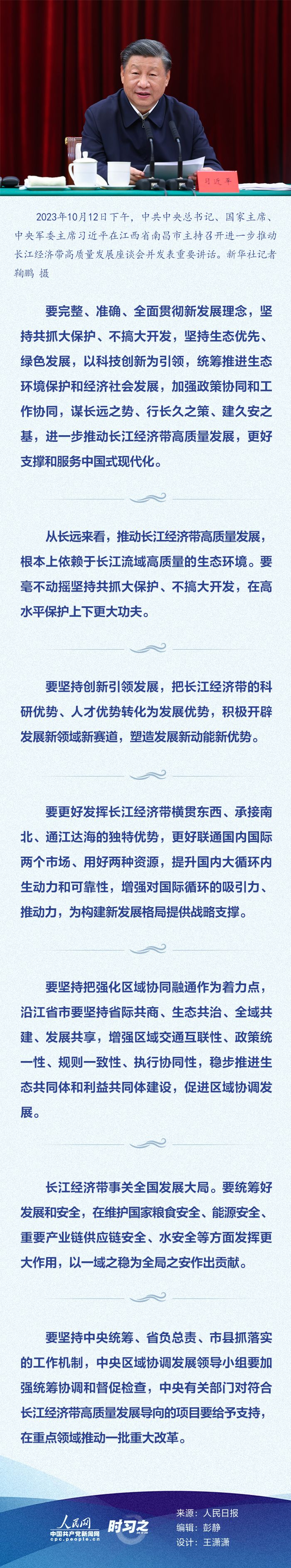 中共中央总书记、国家主席、中央军委主席习近平10月12日下午在江西省南昌市主持召开进一步推动长江经济带高质量发展座谈会并发表重要讲话。座谈会上,为进一步推动长江经济带高质量发展,更好支撑和服务中国式现代化,总书记提出要求。
