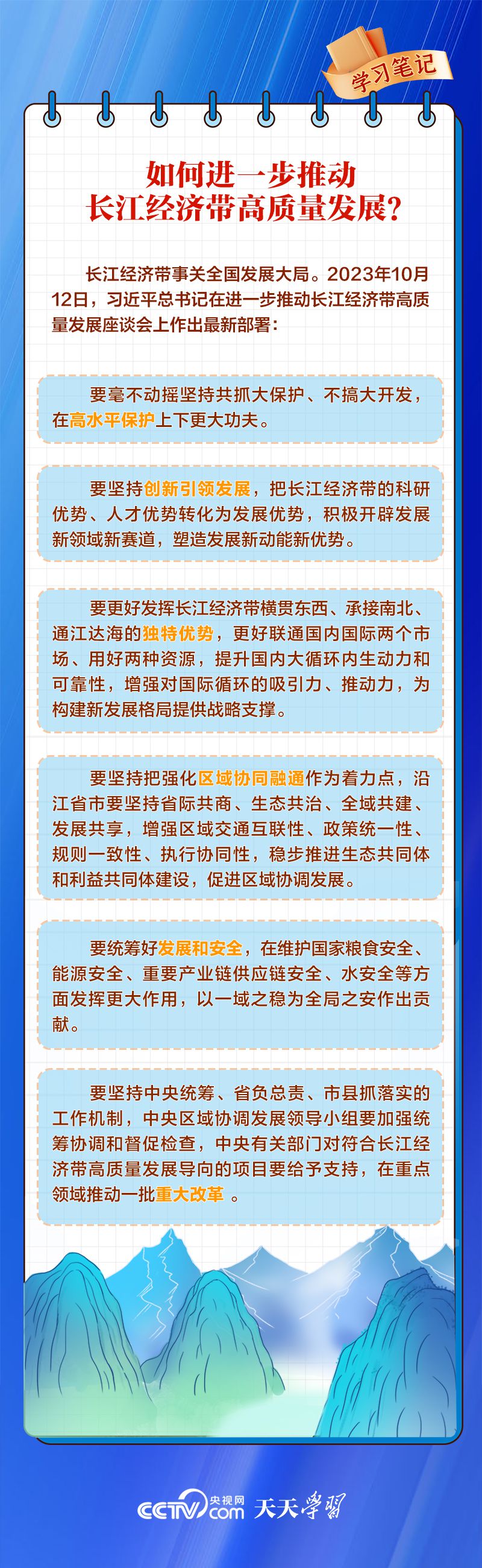 天天学习2023年10月12日,习近平总书记在主持召开进一步推动长江经济带高质量发展座谈会上指出:“总的看,长江经济带发展成就有目共睹,发展质量稳步提升,发展态势日趋向好。同时也要看到,长江流域生态环境保护和高质量发展正处于由量变到质变的关键时期,取得的成效还不稳固,客观上也还存在不少困难和问题,要继续努力加以解决。”