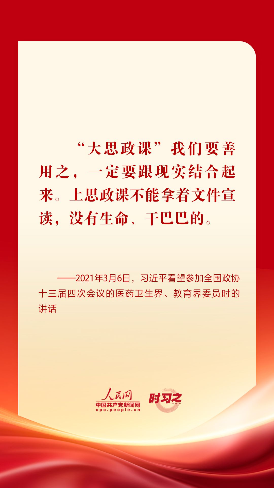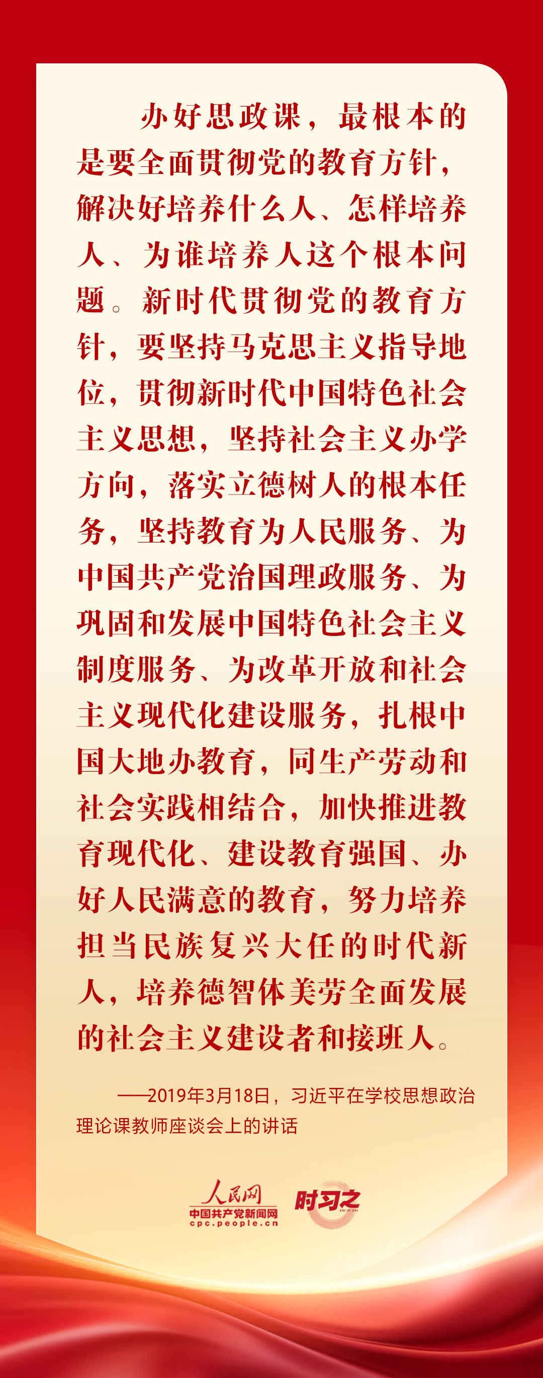 “思政课是落实立德树人根本任务的关键课程,思政课作用不可替代,思政课教师队伍责任重大。”党的十八大以来,从召开全国高校思想政治工作会议、全国教育大会、学校思想政治理论课教师座谈会,到多次赴学校考察和师生交流谈心,习近平总书记围绕思政课建设作出一系列重要论述,为办好思政课提供根本遵循。