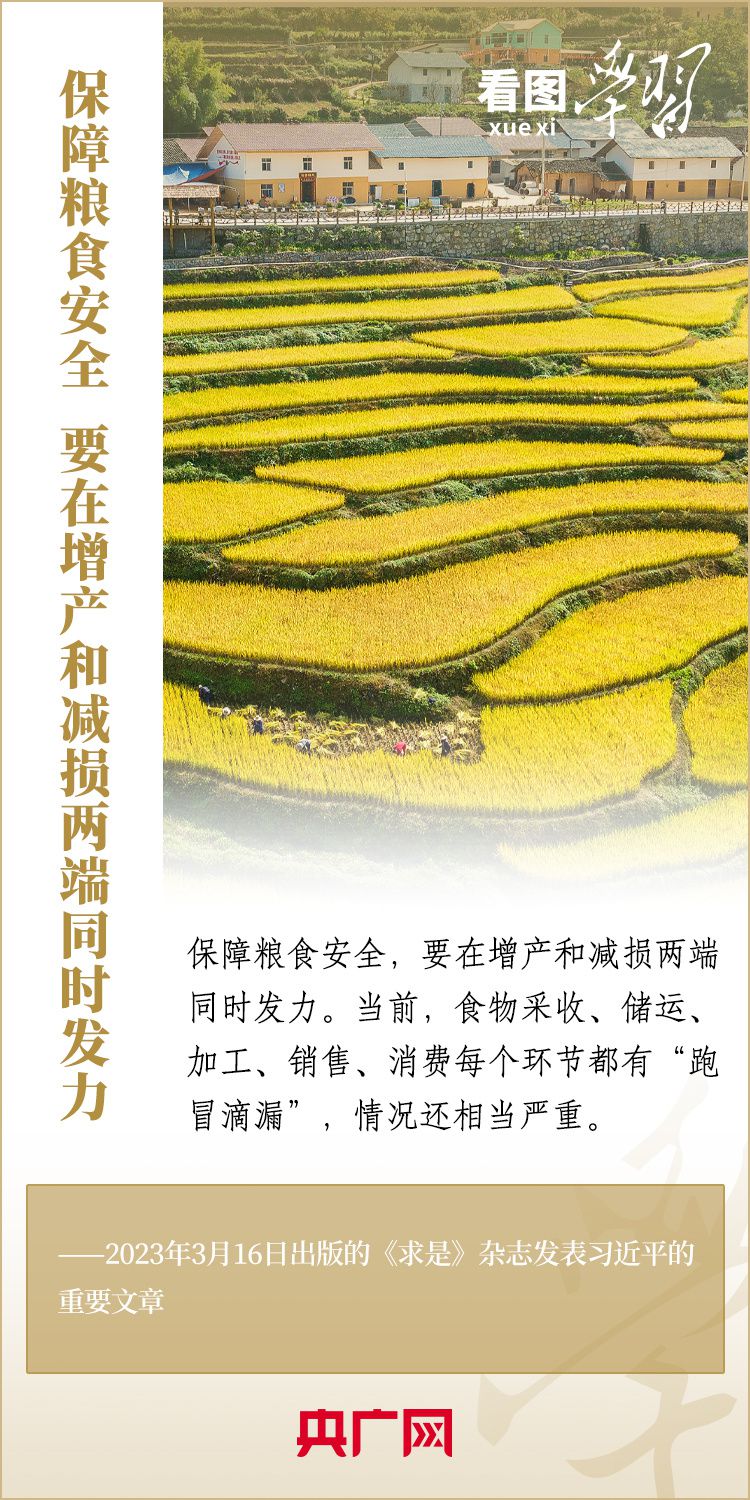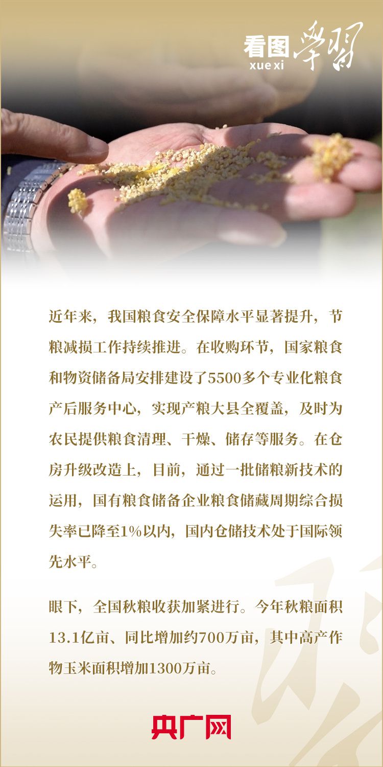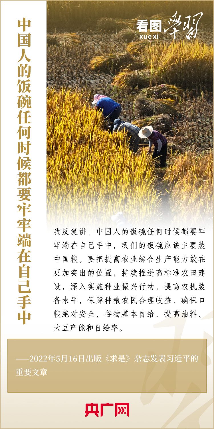粮食安全是“国之大者”。党的十八大以来,习近平总书记在地方考察调研期间,常常走进田间地头,看长势、问收成,多次强调“中国人的饭碗任何时候都要牢牢端在自己手中”,“保障粮食安全,要在增产和减损两端同时发力”。让14亿多人吃饱吃好,总书记始终念兹在兹。今天是世界粮食日,一起来学习!
