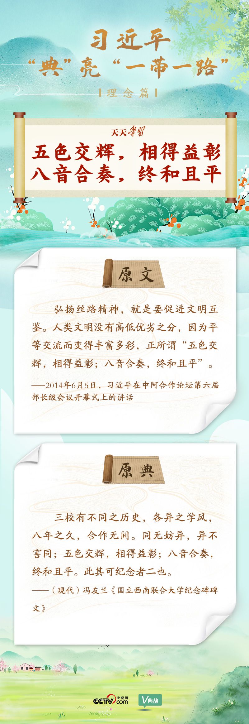 在国内国际多个重要场合,习近平主席频频引经据典,介绍“一带一路”承载的厚重历史,阐述“一带一路”建设的理念和重大意义,描绘“一带一路”美好的发展愿景。央视网《天天学习》栏目特选取习近平主席的部分用典,与您一起学习领会。