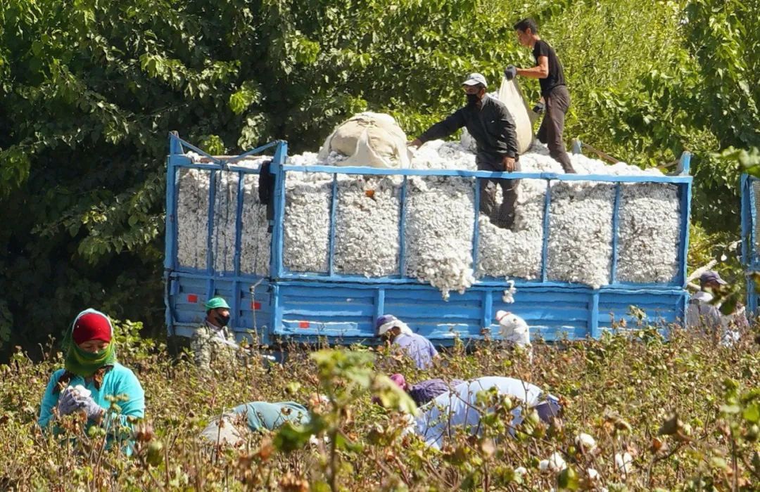 △2020年9月24日,在乌兹别克斯坦锡尔河州,棉农在使用中国滴灌技术的棉田里采摘新棉。