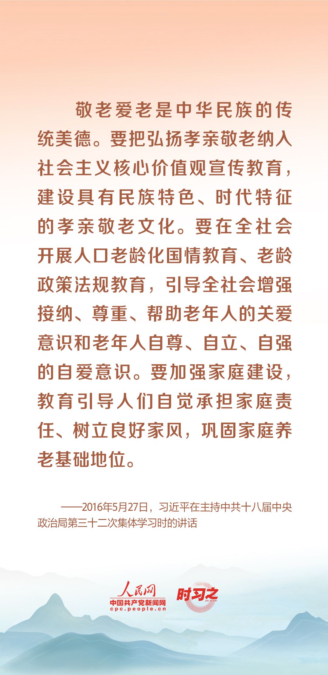 农历九月初九为中国传统节日重阳节。“尊老敬老是中华民族的传统美德,爱老助老是全社会的共同责任。”习近平总书记一直关心老年群体、重视老龄事业,推动尊老、敬老、爱老、助老在全社会蔚然成风。