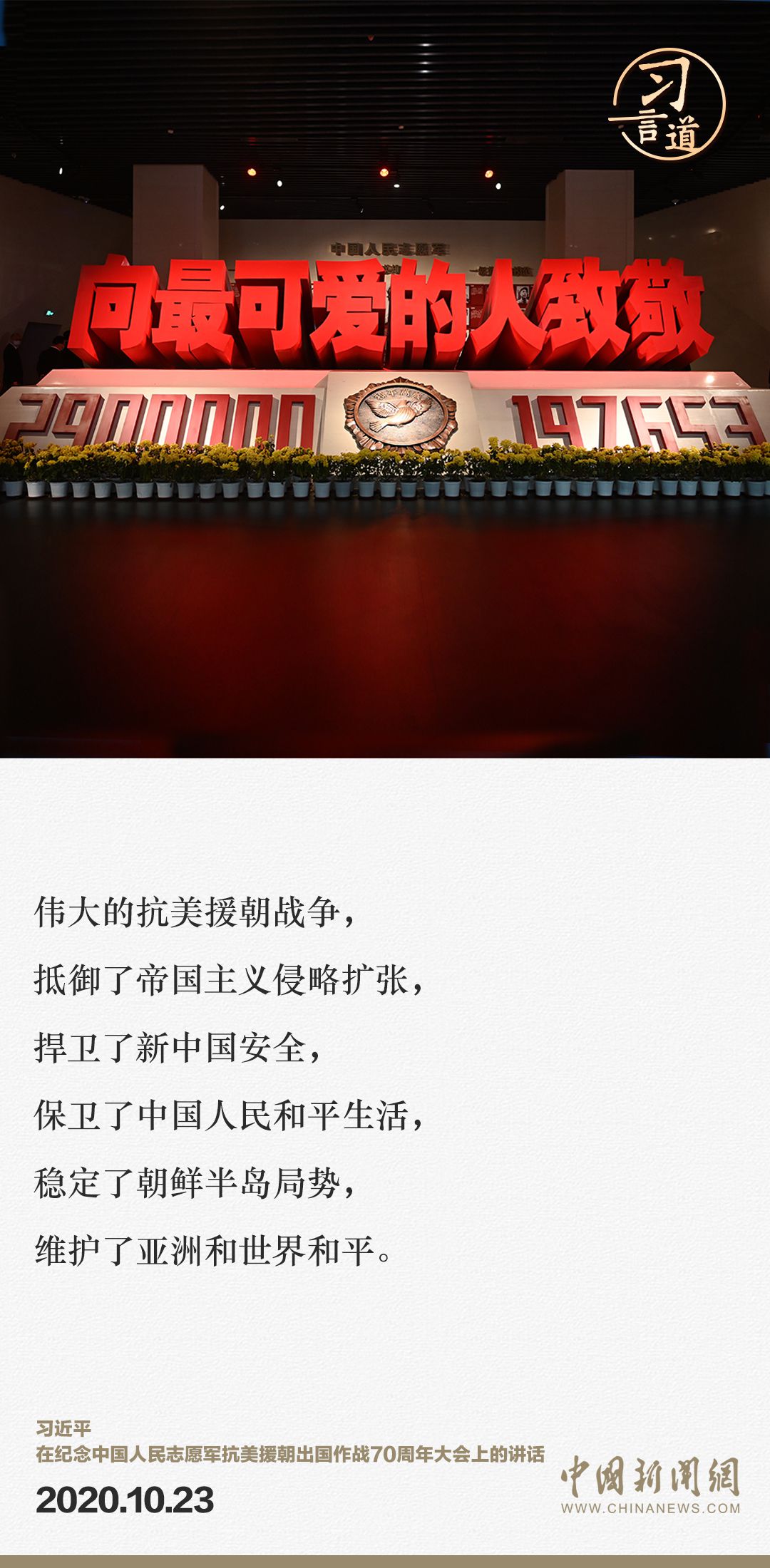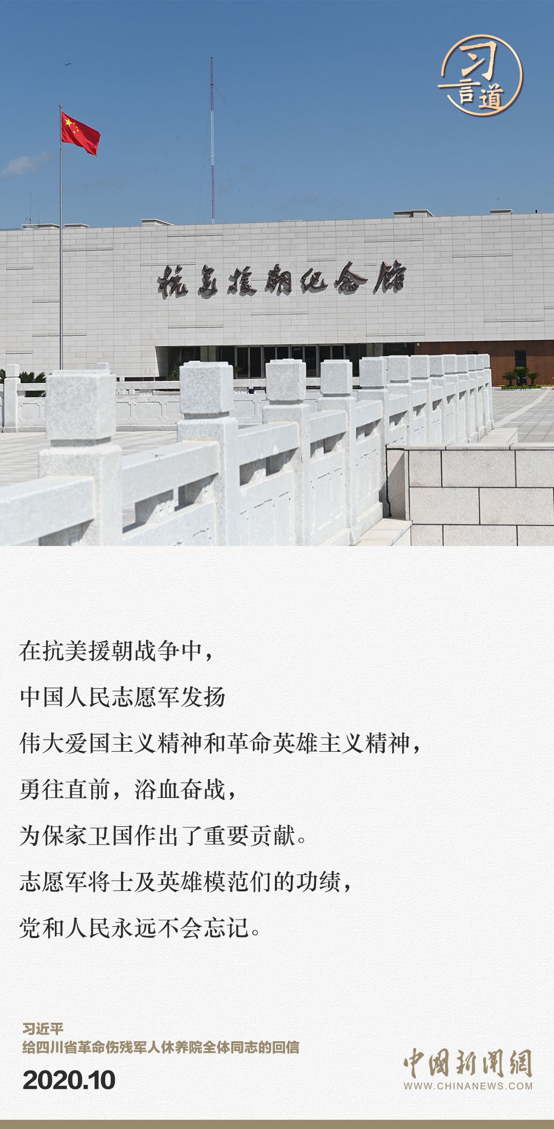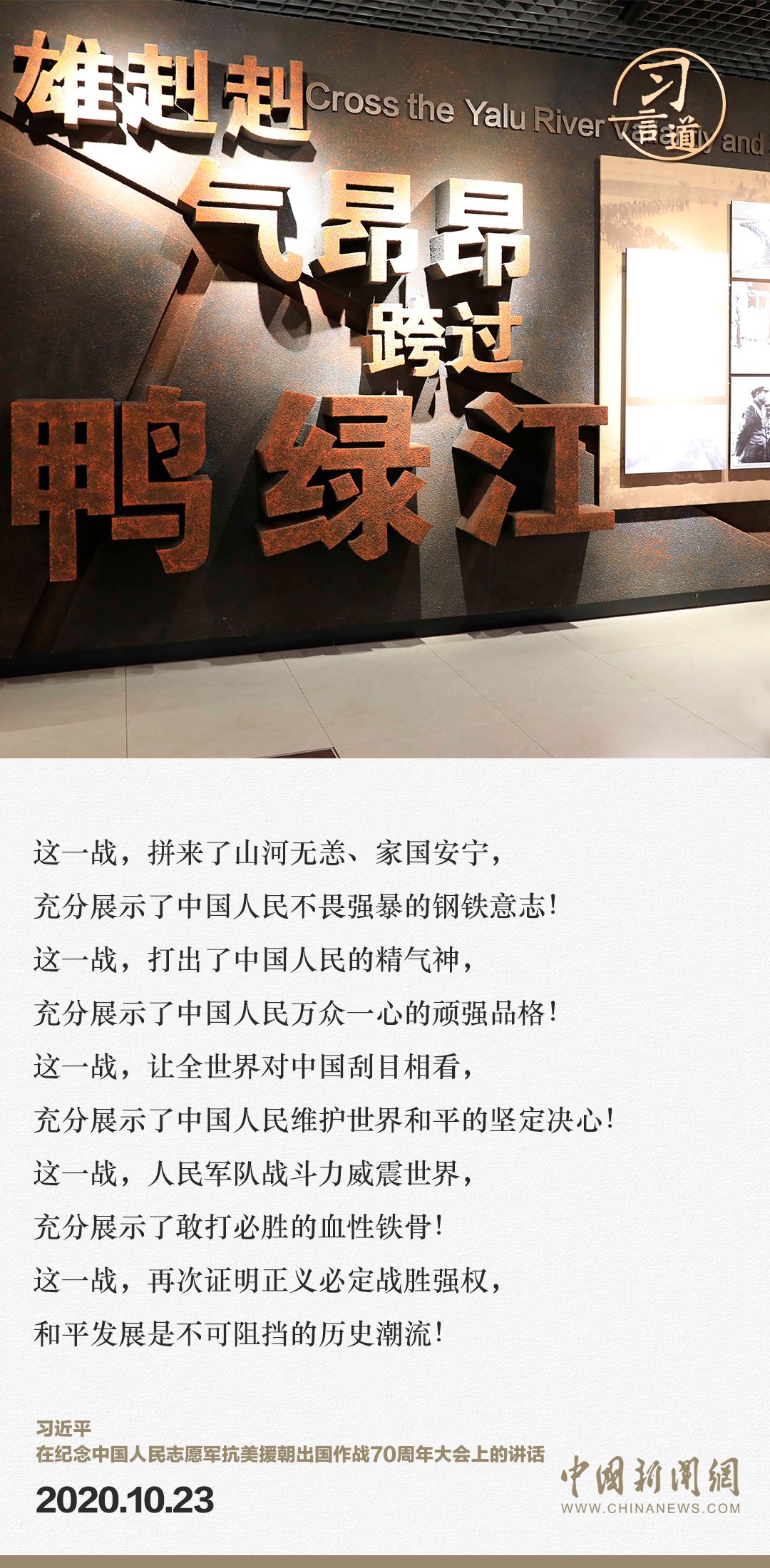 2023年10月25日是中国人民志愿军抗美援朝出国作战73周年纪念日。习近平总书记在多个场合深刻阐述抗美援朝战争胜利的重大意义和时代价值,让我们回顾习近平总书记的重要论述,传承伟大抗美援朝精神。