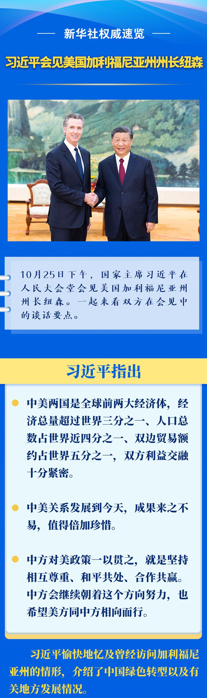新华社权威速览丨习近平会见美国加利福尼亚州州长纽森