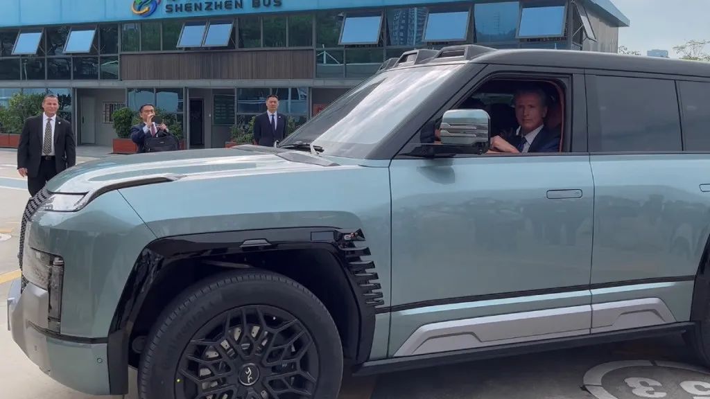 纽森试驾了一款中国新能源汽车并体验了无人驾驶自动掉头技术。试驾结束,纽森说,“这车我想买两辆,很久没看到这种技术了,这是跨越性的技术。”