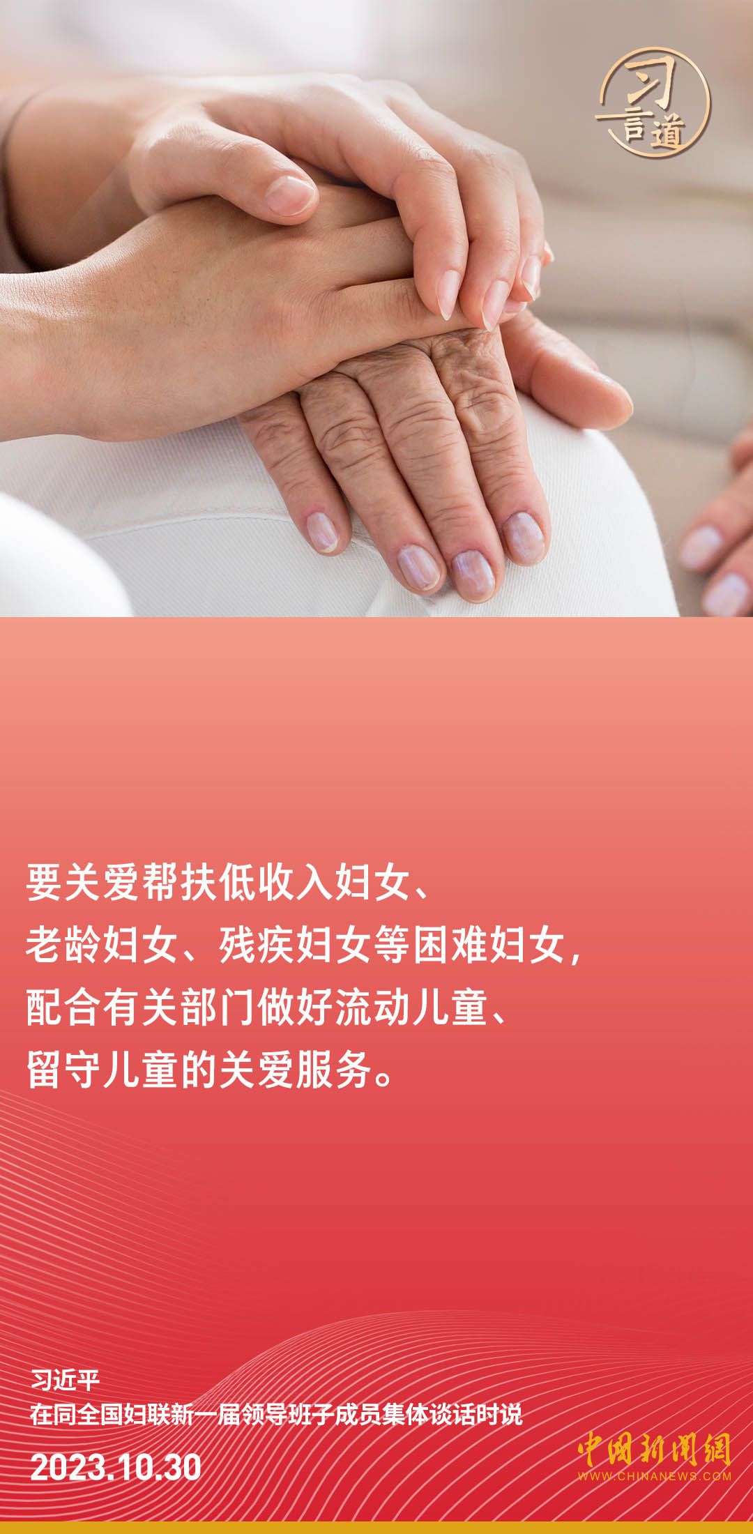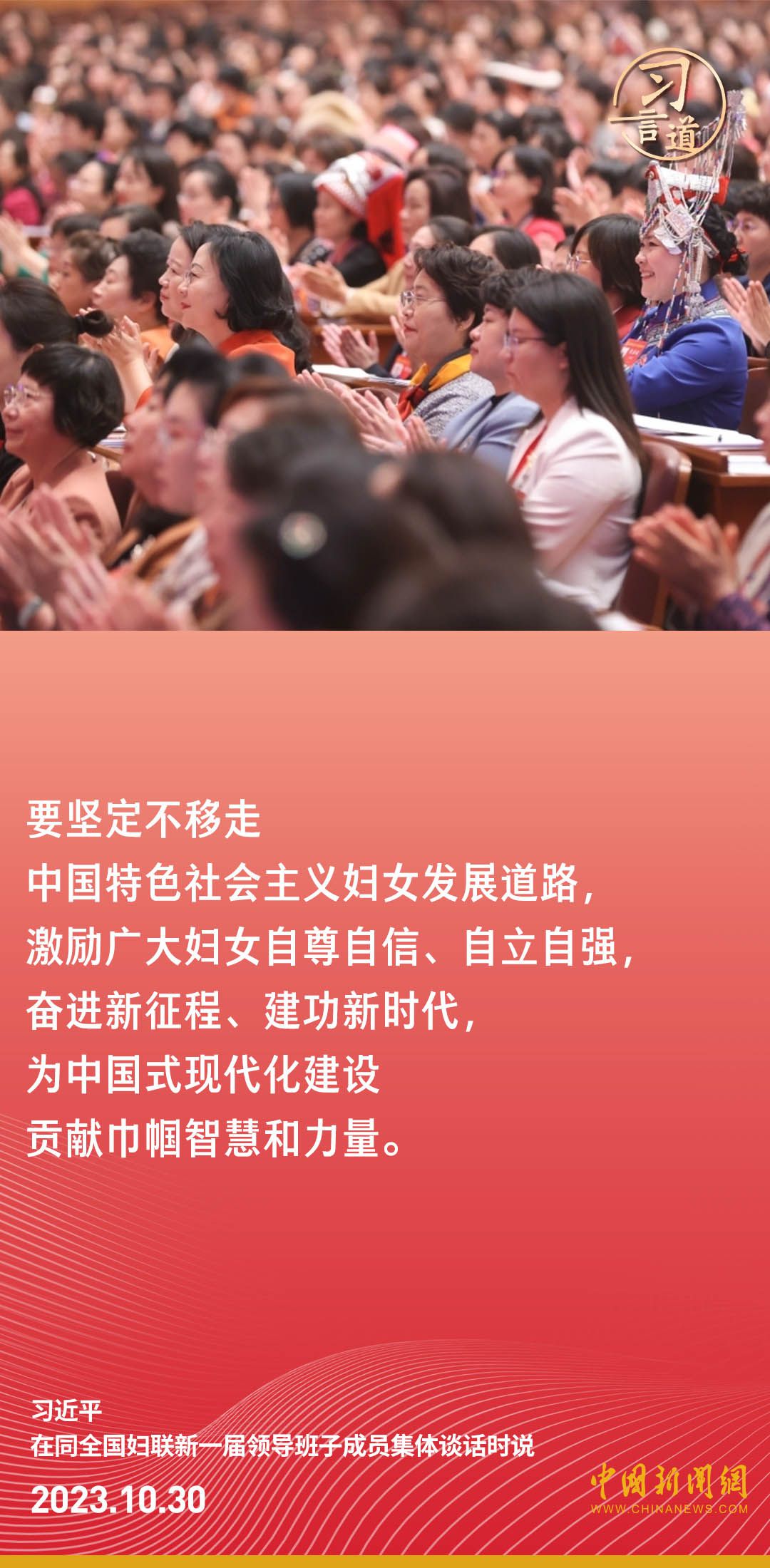 中共中央总书记、国家主席、中央军委主席习近平30日下午在中南海同全国妇联新一届领导班子成员集体谈话并发表重要讲话。习近平强调——