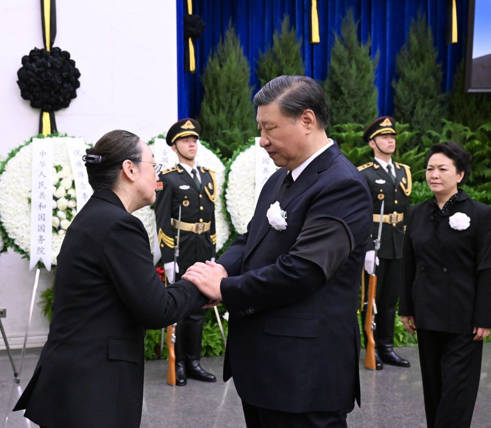 上午9时许,习近平和夫人彭丽媛,李强、赵乐际、王沪宁、蔡奇、丁薛祥、李希、韩正等,在哀乐声中缓步来到李克强同志的遗体前肃立默哀,向李克强同志的遗体三鞠躬,并与李克强同志亲属一一握手,表示慰问。胡锦涛送花圈,对李克强同志逝世表示哀悼。