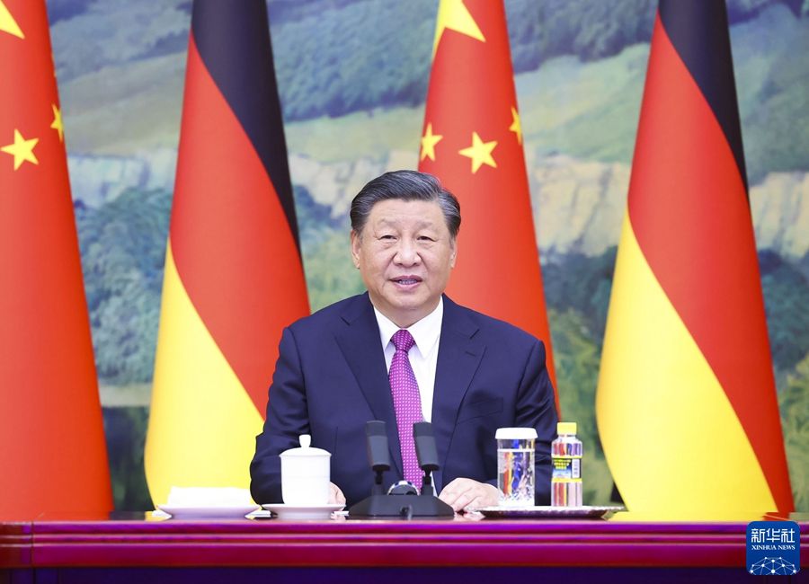 11月3日下午,国家主席习近平同德国总理朔尔茨举行视频会晤。