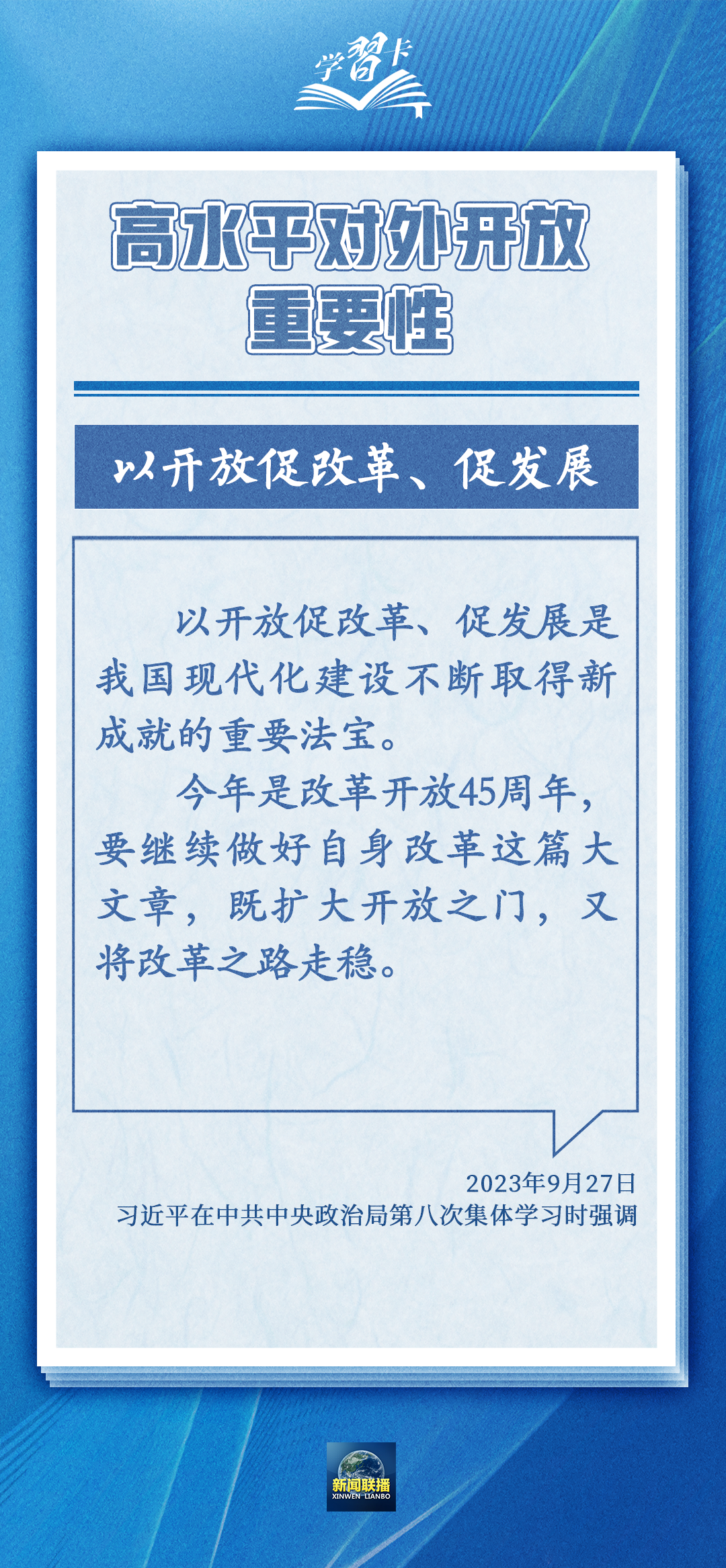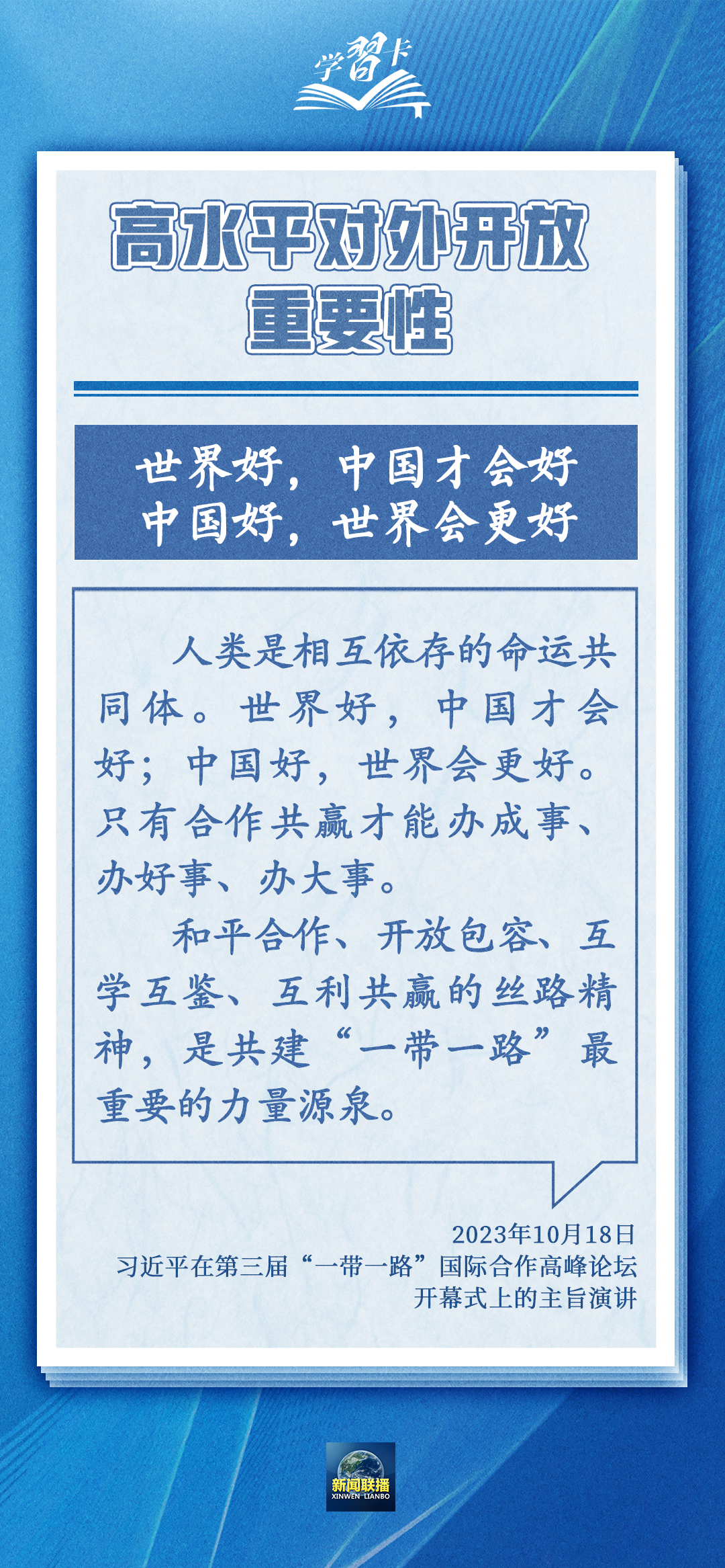今年是改革开放45周年,也是习近平总书记提出共建“一带一路”倡议10周年,提出这一倡议的初心,是借鉴古丝绸之路,同各国加强互联互通,并多次在重要场合中强调“高水平对外开放”的重要性。开放中国大市场有哪些意义?我们应当如何做?一起学习↓