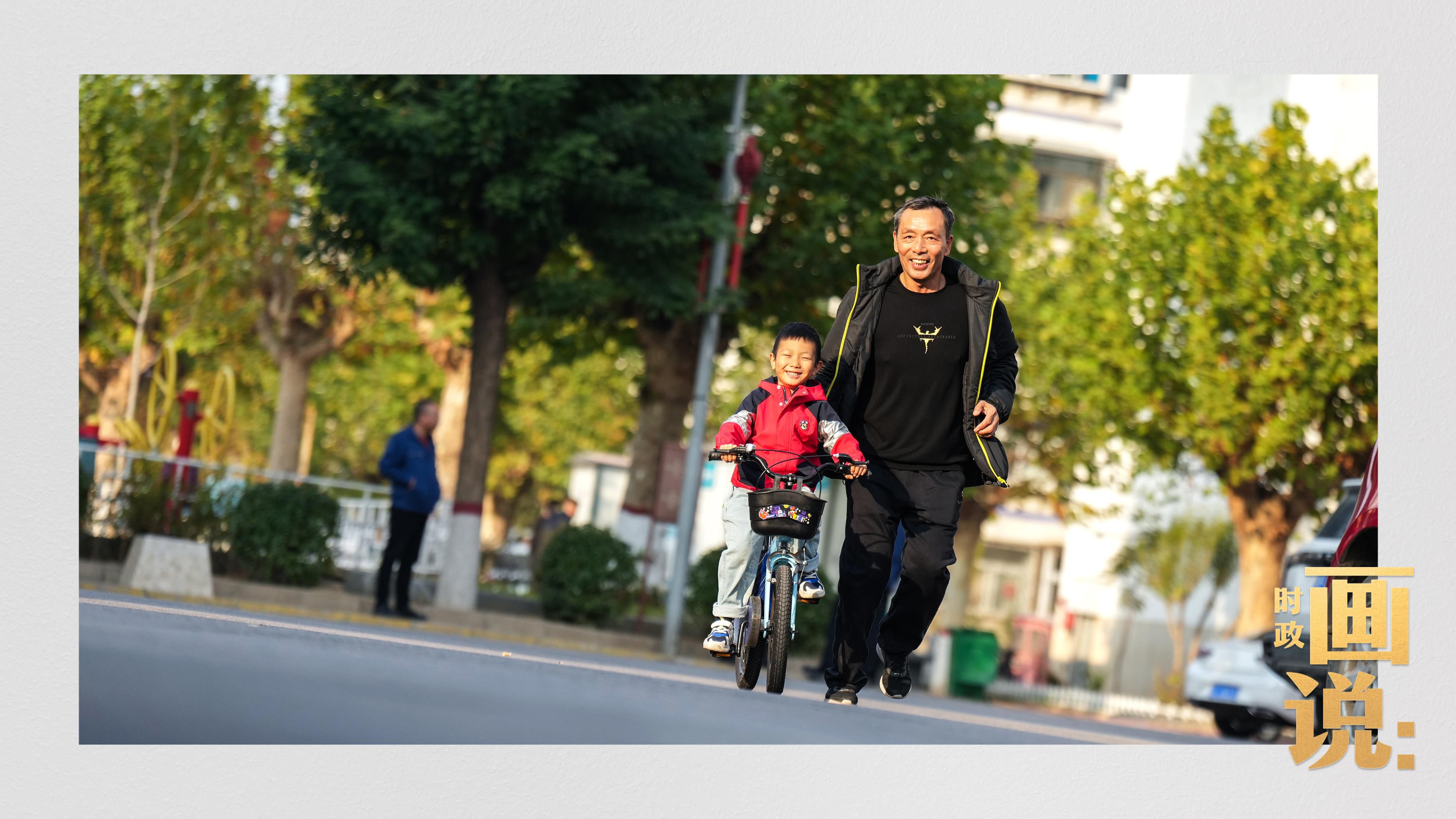 △学骑自行车的爷孙俩其乐融融。冬日的暖阳留在身上,会心的笑容挂在脸上。永济秀园小区,涿州。