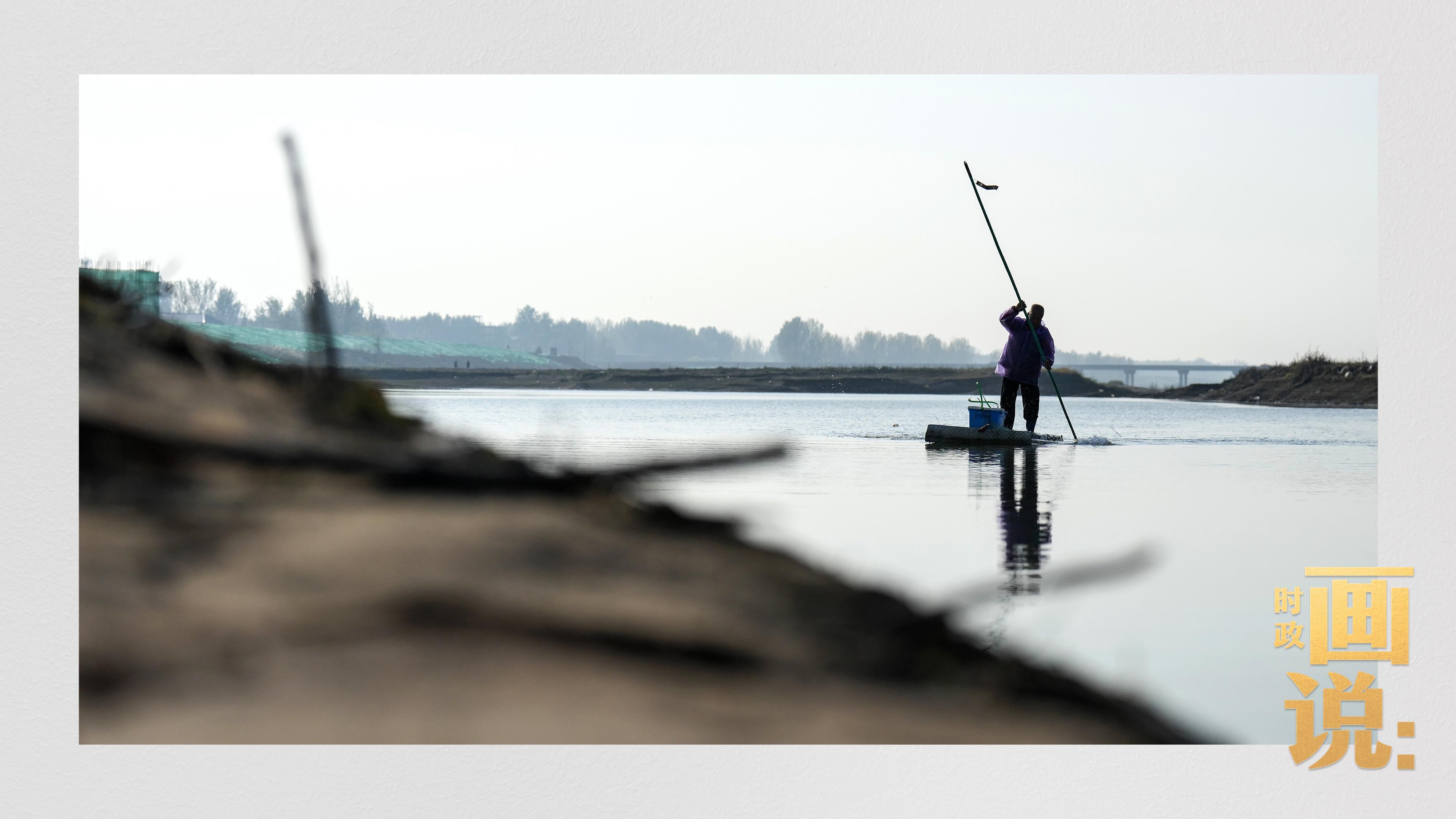 △白沟河上的渔民在晨雾里寻找渔获。涿州。