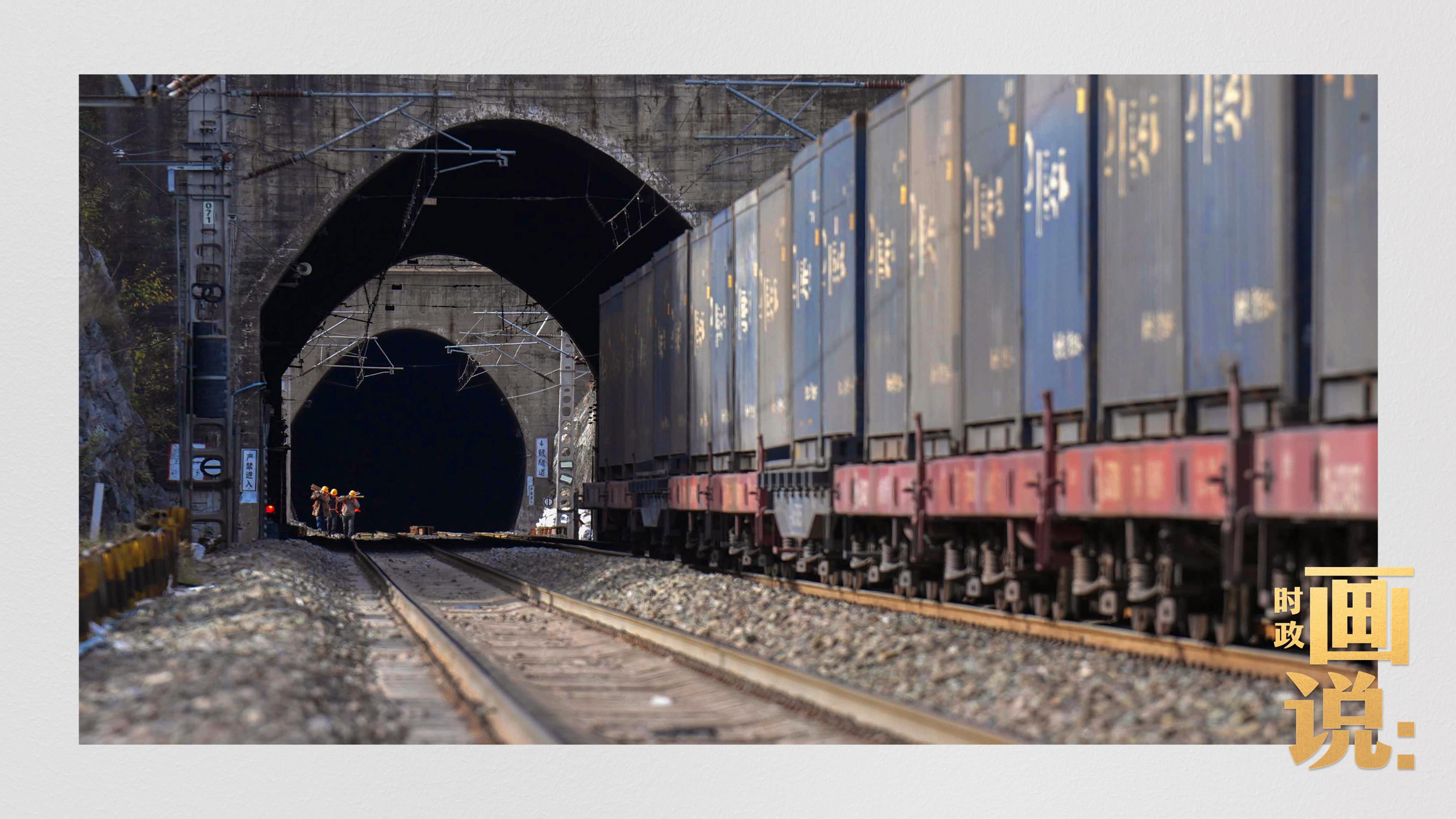 △丰沙铁路线上,满载煤炭的货运列车穿过隧道,加固路基的筑路工人在沿线忙碌。妙峰山镇,北京。1955年通车的丰沙铁路自京西沿永定河岸北上,蜿蜒穿行于高山深谷之间,是晋煤外运的重要通道之一。今年汛期,这条铁路线因特大洪水灾害一度中断运行。