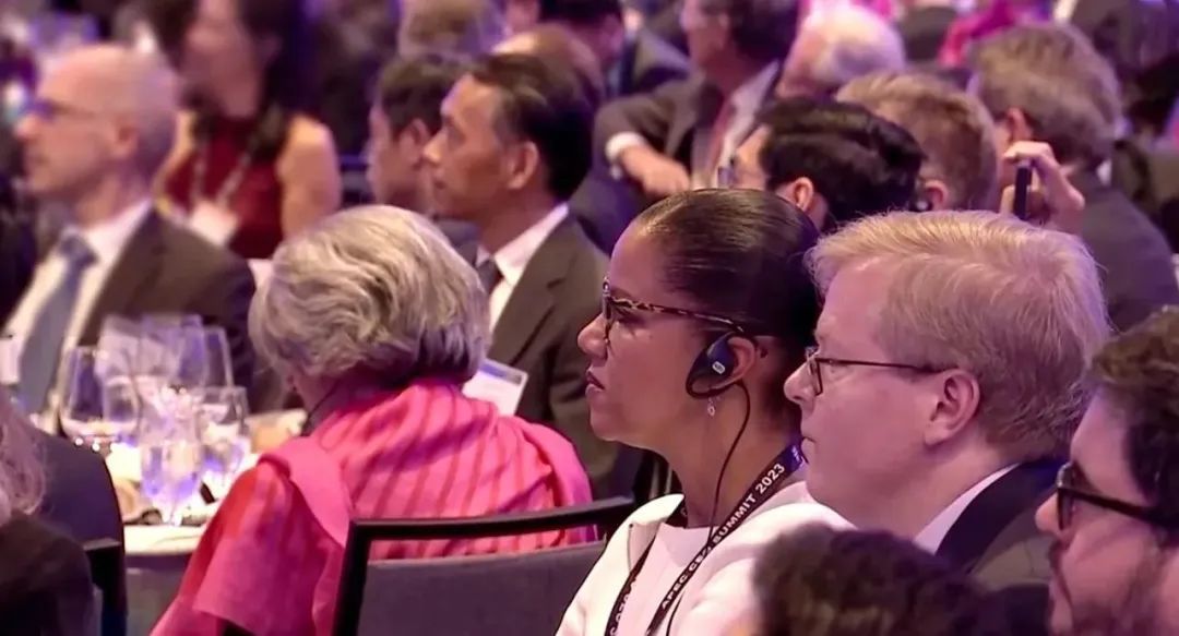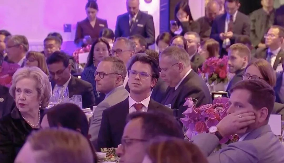 △当地时间11月15日晚,习近平主席在美国友好团体联合欢迎宴会上发表演讲。图为参加宴会的人士认真聆听演讲。