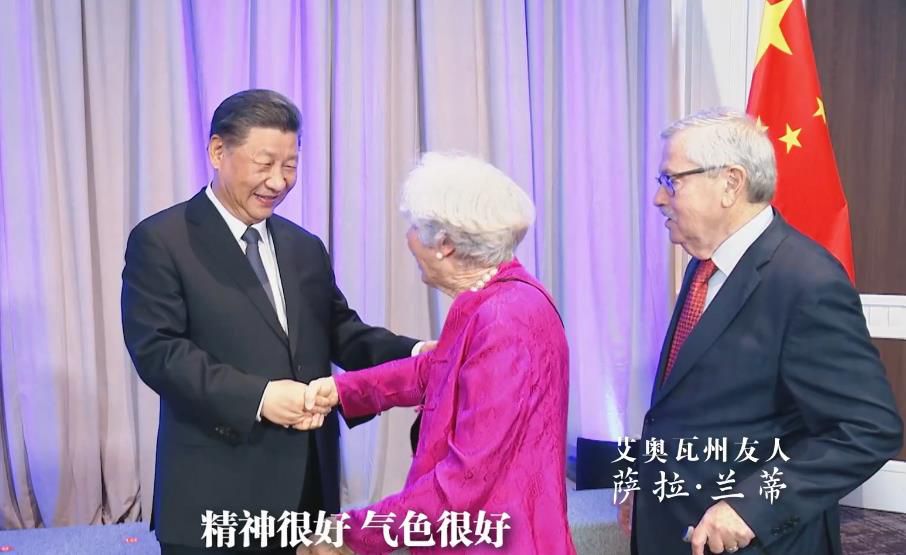 △当地时间11月15日晚,习近平主席在美国旧金山亲切会见艾奥瓦州友人萨拉·兰蒂。