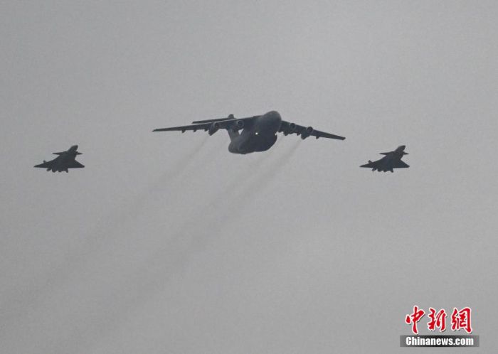 11月23日,第十批在韩中国人民志愿军烈士遗骸迎回仪式在沈阳桃仙国际机场举行。仪式结束后,志愿军烈士遗骸棺椁被护送前往沈阳抗美援朝烈士陵园。今年是抗美援朝战争胜利70周年,也是在韩中国人民志愿军烈士遗骸归国安葬的第十年。2014年至2023年,10批共938位在韩中国人民志愿军烈士遗骸归国,并长眠于沈阳抗美援朝烈士陵园。图为搭载着25位志愿军烈士遗骸及相关遗物的运-20运输机在两架歼-20飞机伴飞护航下,飞临沈阳桃仙国际机场上空。中新网记者 于海洋 摄