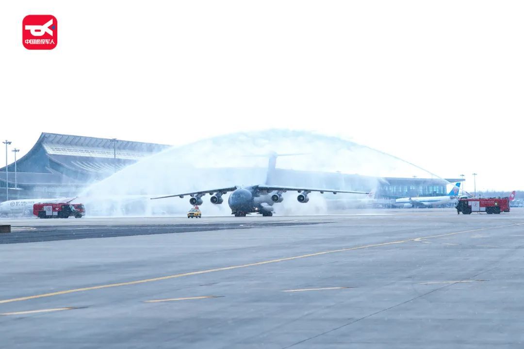 11月23日上午,辽宁省沈阳桃仙国际机场。两架歼-20战斗机护航运-20运输机呼啸而来。运-20降落,缓缓通过水门。现场近千人以最高礼仪迎回25位在韩中国人民志愿军烈士遗骸。