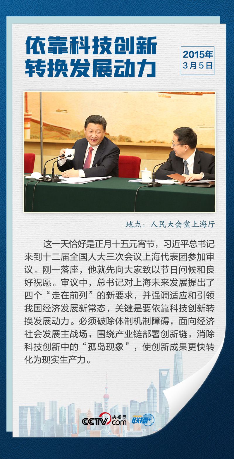 上海是我国最大的经济中心城市,是全国改革开放的排头兵、创新发展的先行者,习近平曾多次深入上海各地区调研,多次参加全国两会上海代表团审议,“科技创新”是他反复强调的关键词。