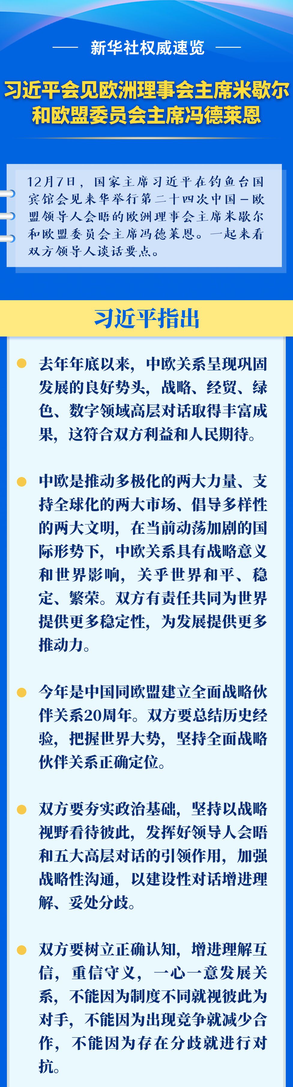 新华社权威速览|习近平会见欧洲理事会主席米歇尔和欧盟委员会主席冯德莱恩