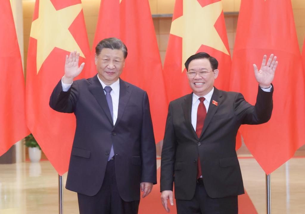 习近平总书记说,中共二十大胜利召开后,我第一时间邀请阮富仲总书记访华,此次我又以对越南国事访问作为今年中国外交圆满收官,具有重要意义。中越两党领导人亲自擘画两党两国关系发展,是我们的良好传统。此访期间,我们共同宣布构建具有战略意义的命运共同体,使中越关系站在新的历史起点上,必将推动中越关系迈上新台阶。