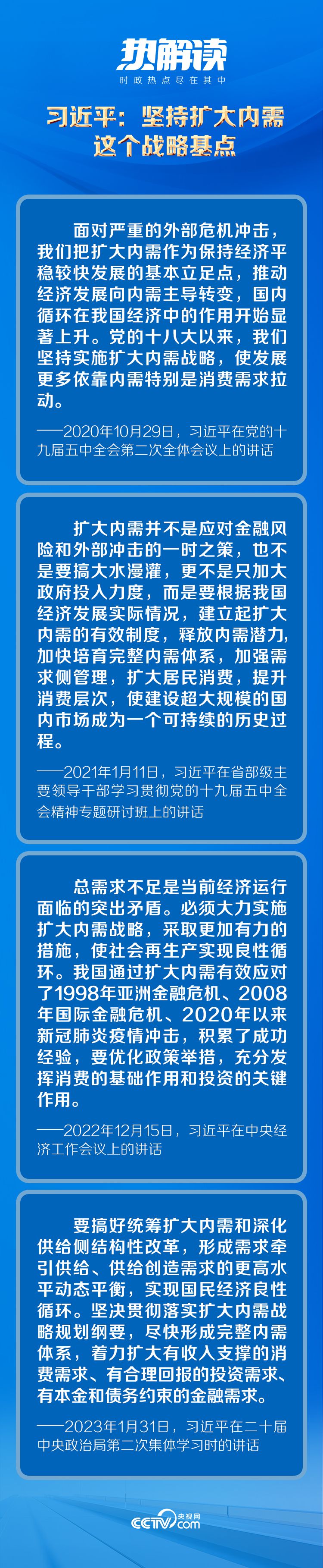“内需是中国经济发展的基本动力,也是满足人民日益增长的美好生活需要的必然要求。”习近平总书记的鲜明论断,深刻指出扩大内需对拉动中国经济发展和解决社会主要矛盾的重要性,为制定国民经济中长期发展规划和改善宏观调控提供了行动指南。