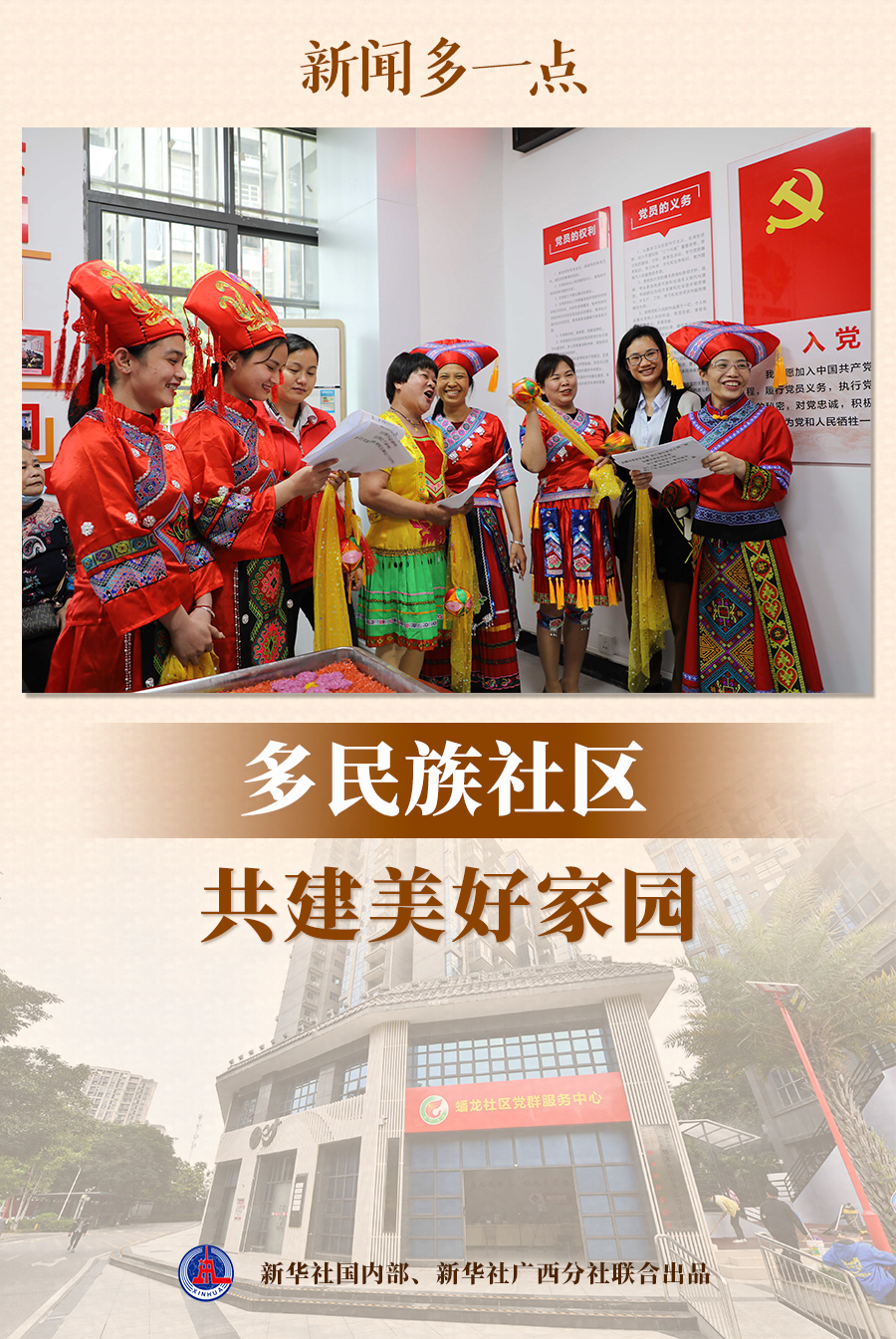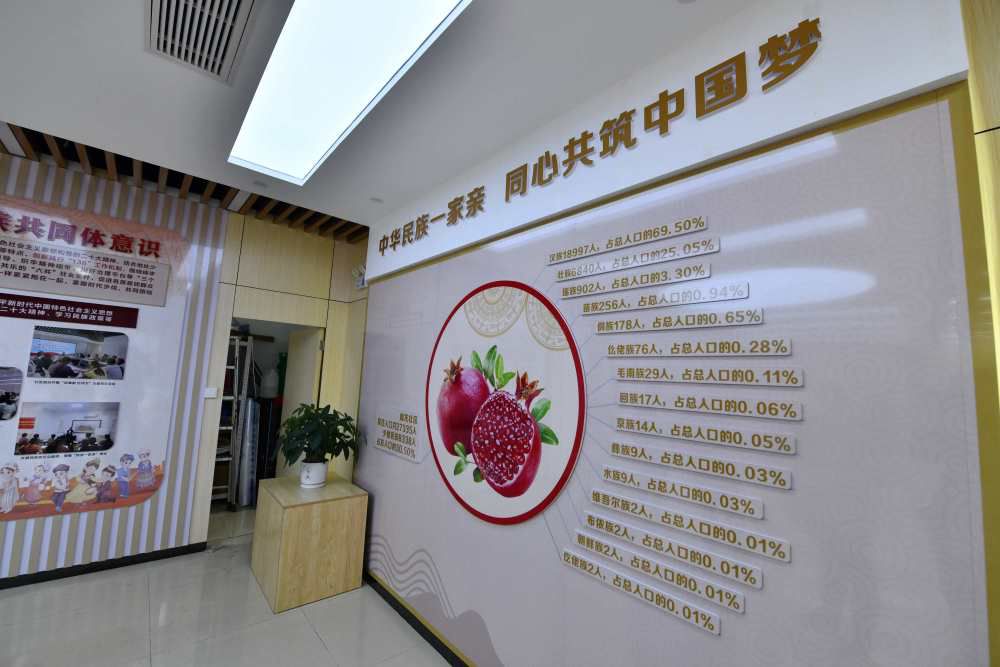 近日,在社区党群服务中心,工作人员在展示少数民族手工艺品。新华社记者 黄孝邦 摄