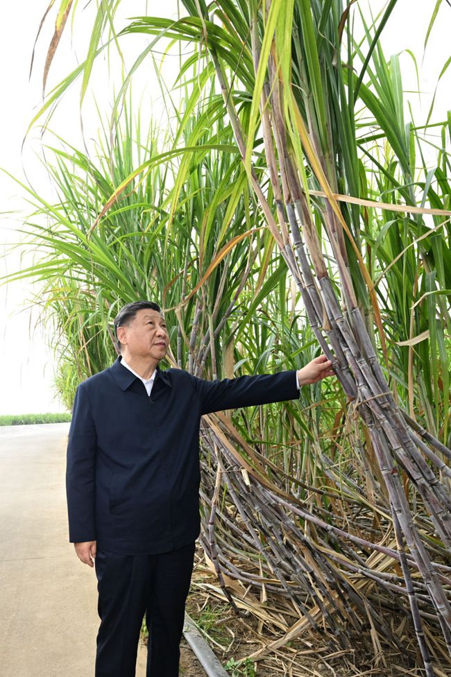 12月14日下午,习近平总书记在广西来宾市考察调研。他先后来到来宾市国家现代农业产业园黄安优质“双高”糖料蔗基地和东糖凤凰有限公司,了解甘蔗良种繁育、种植收成、糖产业发展等情况。
