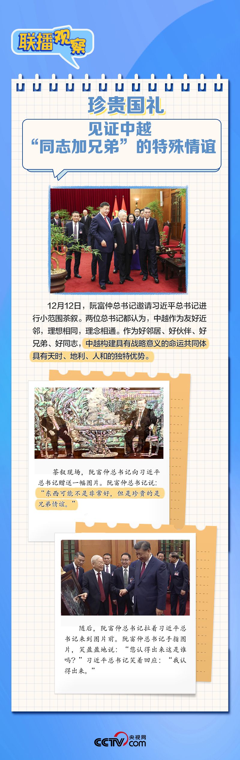 多名越南党政领导人接机、中越各界代表手持两党两国旗帜夹道欢迎、16位越共中央政治局委员全部到场参加欢迎宴会……访越期间,习近平总书记受到越方高规格热情接待,点滴细节见证两国“同志加兄弟”情谊。