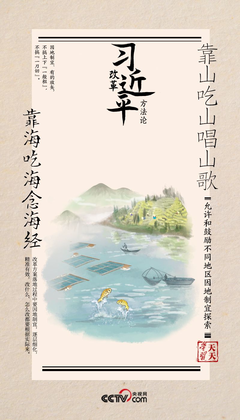 【编者按】在推动改革开放工作中,习近平提出了诸多具有重大理论和实践意义的工作方法,并用独有的“习式语言”阐释表达。央视网《天天学习》推出“习近平改革方法论”系列策划,讲述习近平推进改革开放、破解发展难题的故事,阐释这些改革方法论中蕴含的理论价值与实践意义。