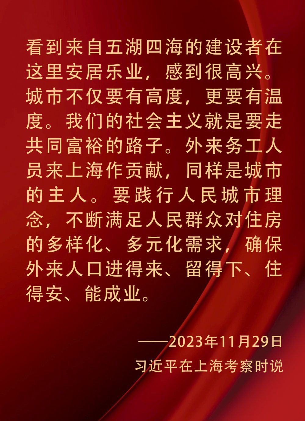 2023年11月29日下午,习近平在上海市闵行区新时代城市建设者管理者之家考察时,走进社区宿舍型出租房源租户的住房,了解在此居住的城市一线工作者的生活状况。