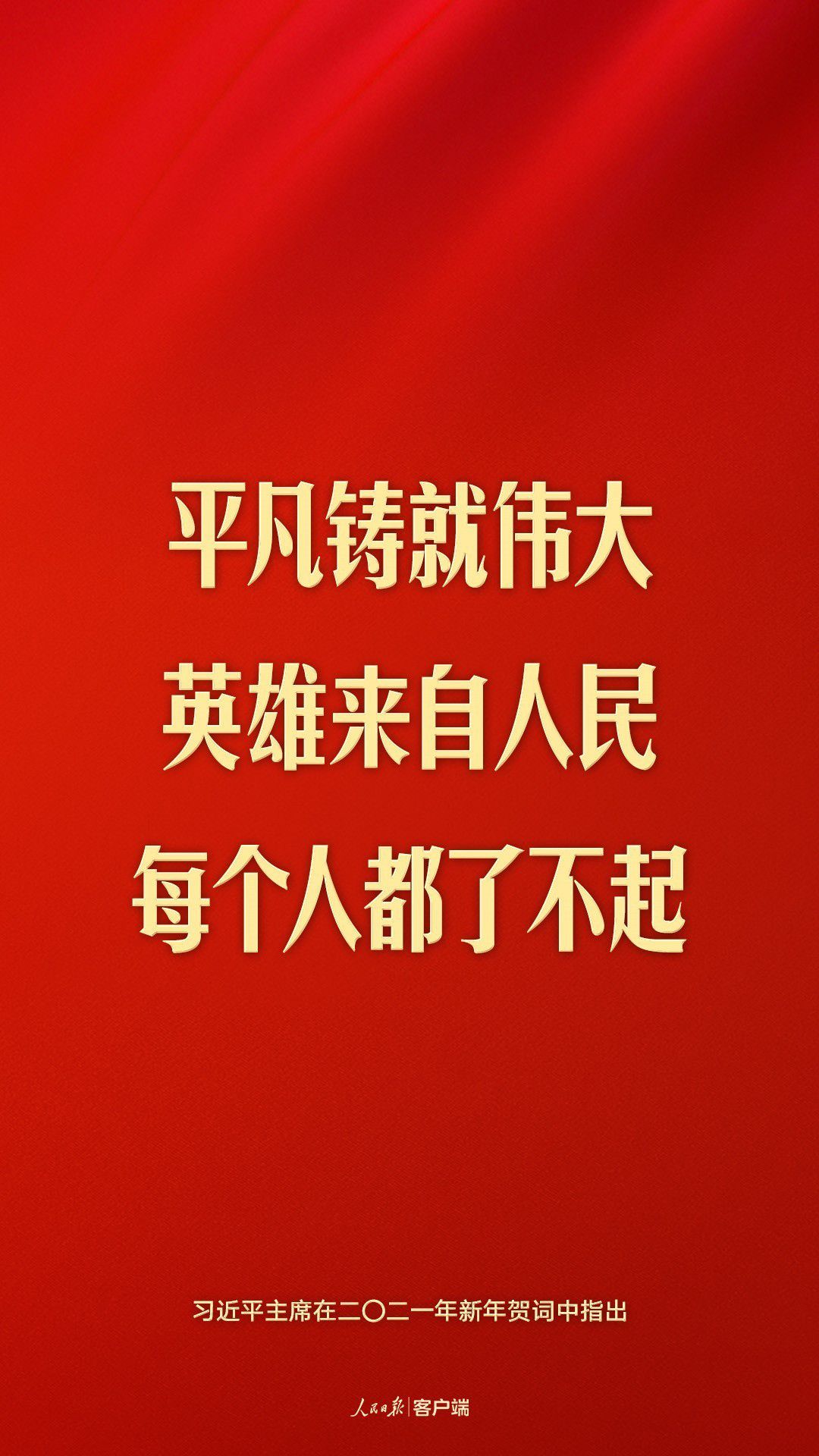 “无数平凡英雄拼搏奋斗,汇聚成新时代中国昂扬奋进的洪流。”习近平主席在新年贺词中每一次对普通人的点赞,都凝聚着心系民生的赤诚情怀,饱含着歌颂奋斗的真挚情感。