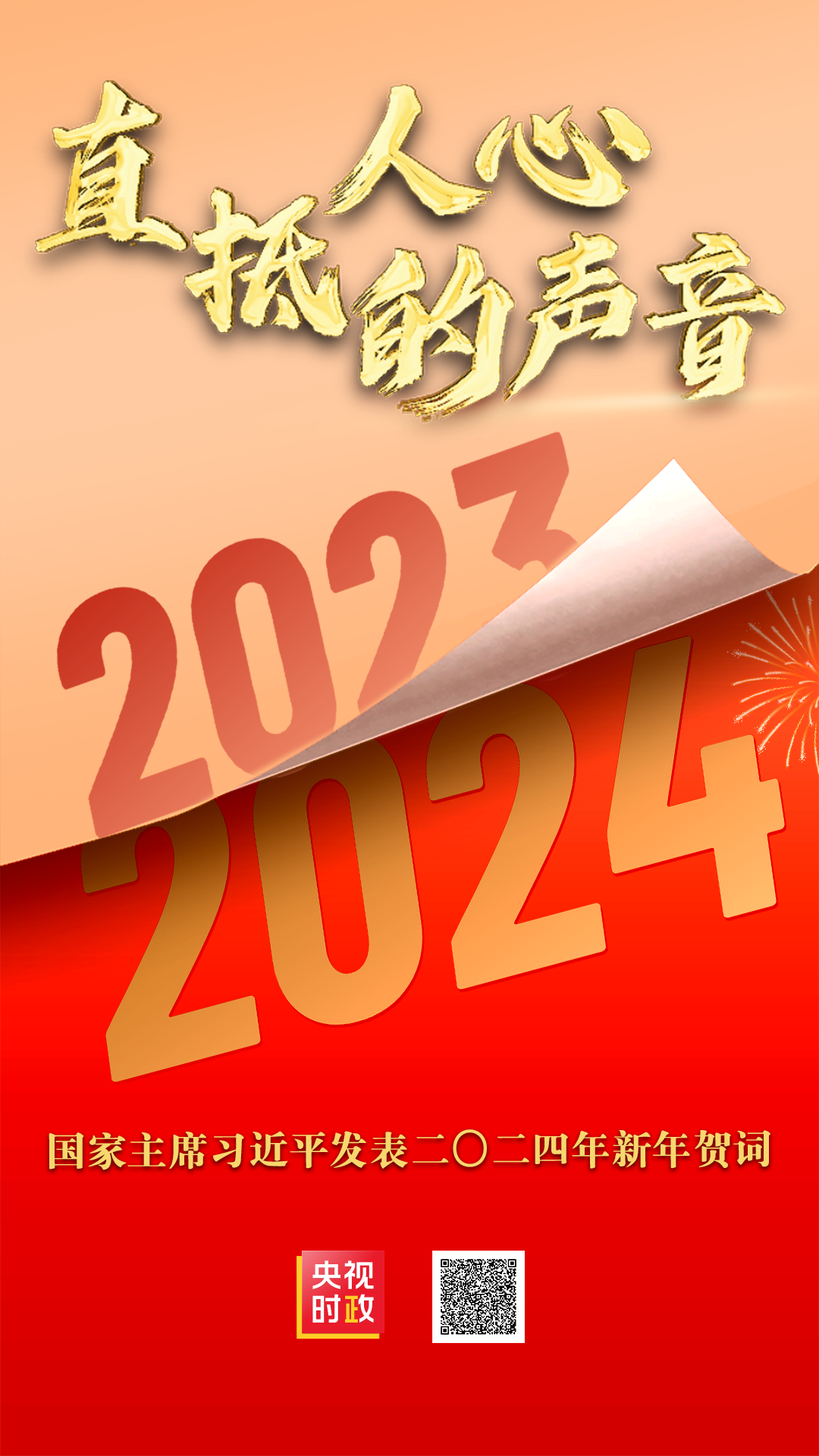 2023年12月31日19时,国家主席习近平通过中央广播电视总台和互联网,发表了二〇二四年新年贺词。