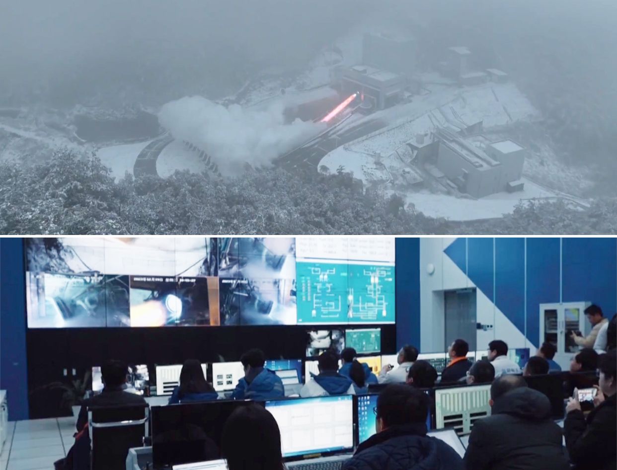 在位于湖州美女山的蓝箭航天热态试验中心,新一轮改进型天鹊发动机试车实验正在进行。